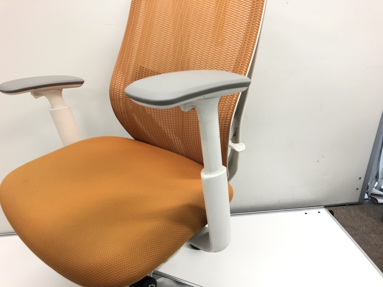 【売れ筋商品入荷!】オカムラ製 シルフィー 肘付きチェア※オレンジ【前傾姿勢可能】【可動肘】
