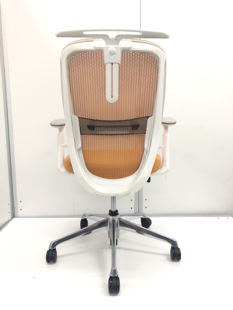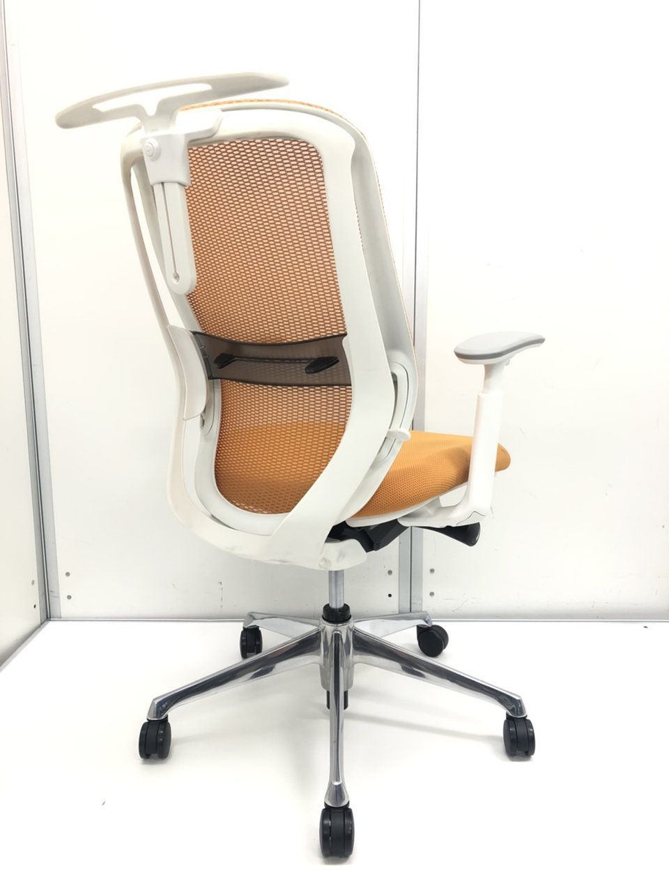 【オカムラ製シルフィーチェア】 メッシュ オレンジ色 ホワイトシェル おすすめ 可動肘 在宅ワーク ハイバック 高級チェア【オフィスチェア店】