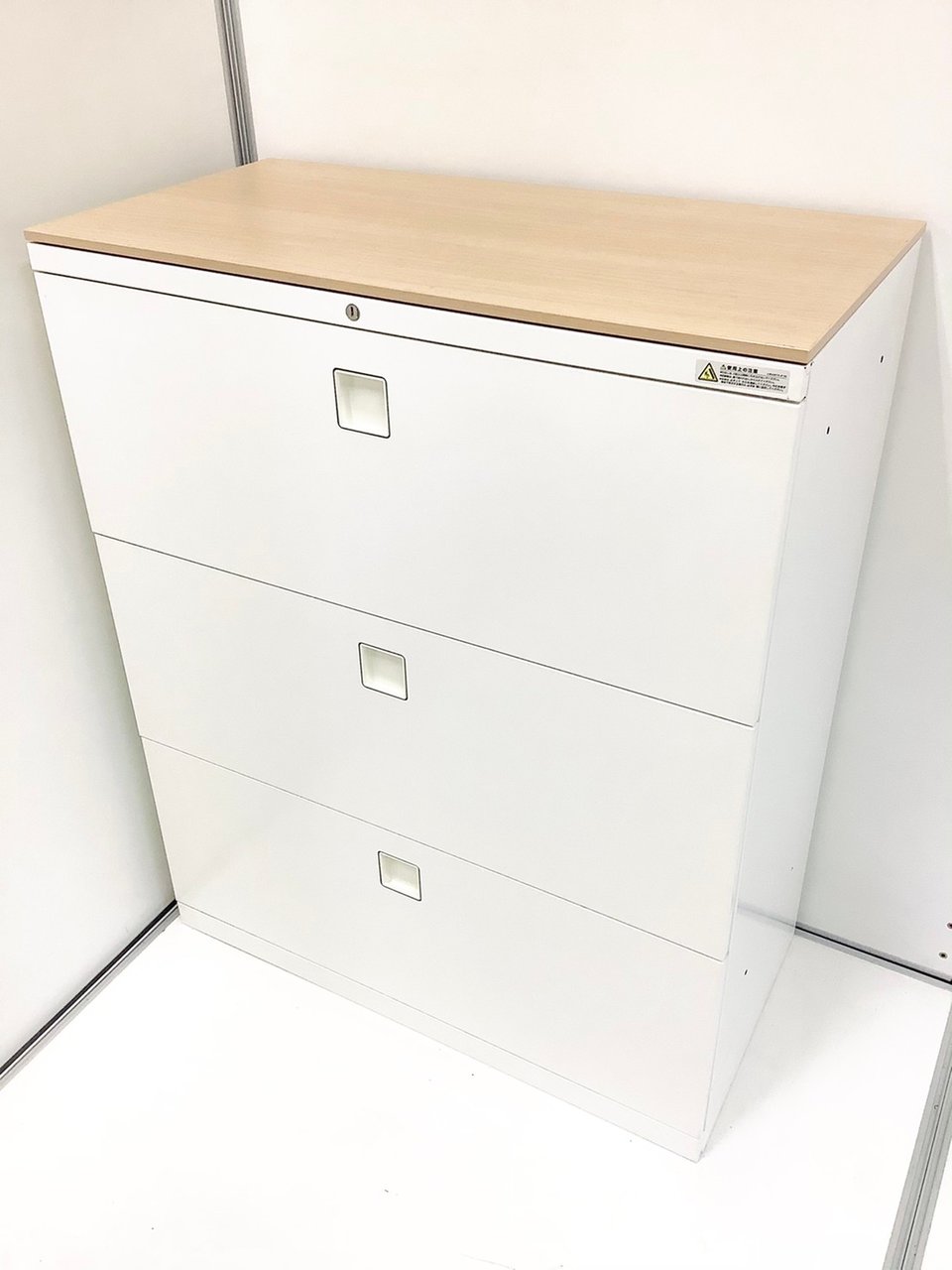 オカムラ製のレクトラインシリーズ、3段ラテラル書庫が入荷致しました。