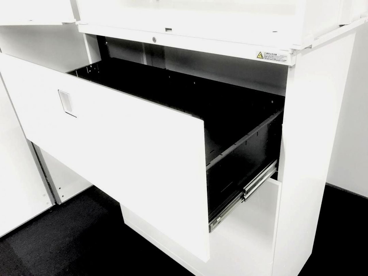 - 一部不具合ありそ引出の開閉不可、施錠不可、棚板無しといったの書庫の本来の効用を果たすための機能以外の一部が使用不可(例、扉、引出の開閉がしづらいなどがある。 )