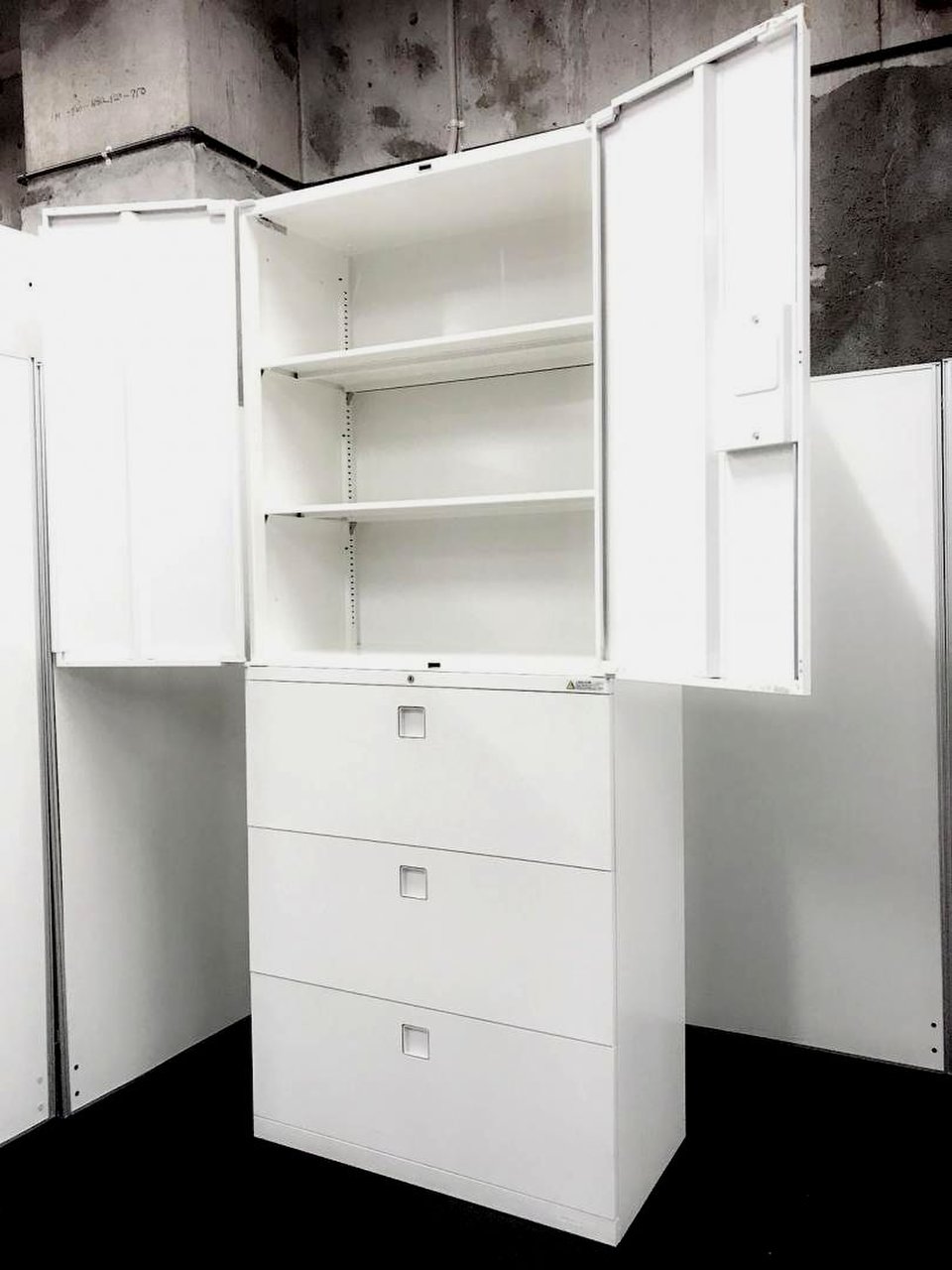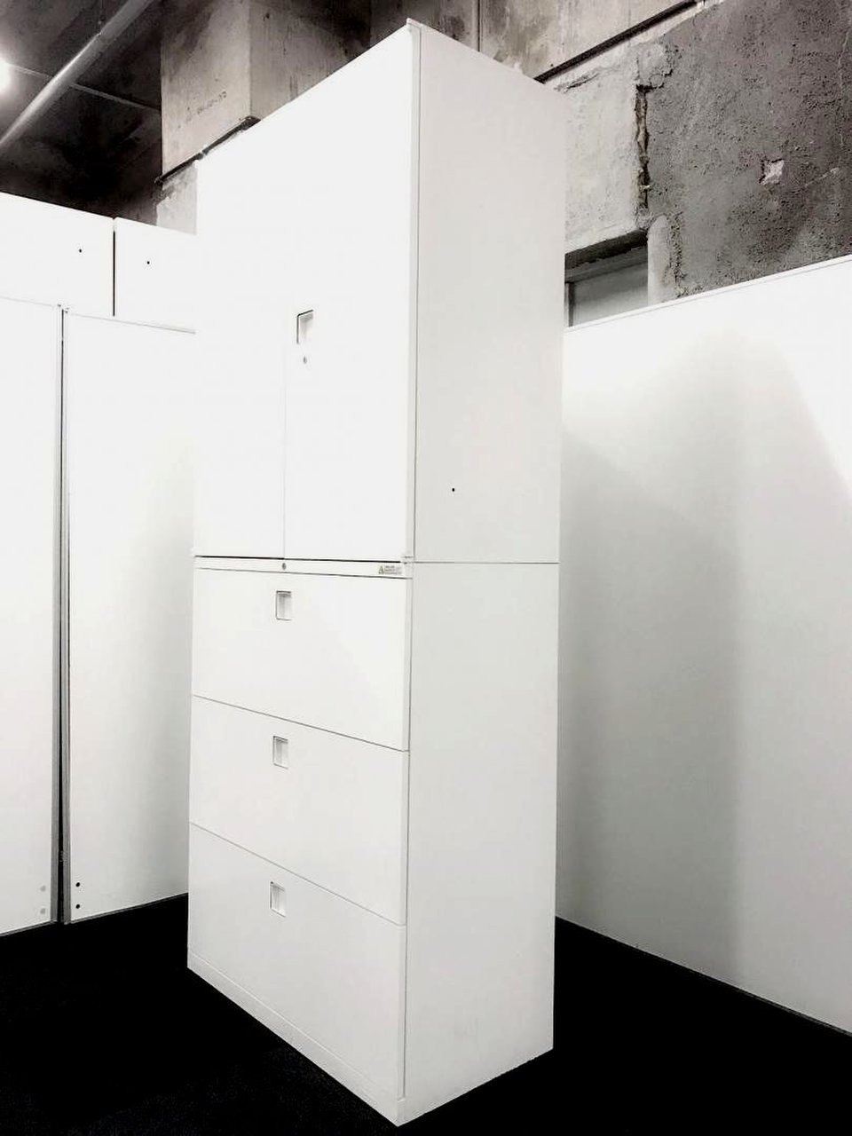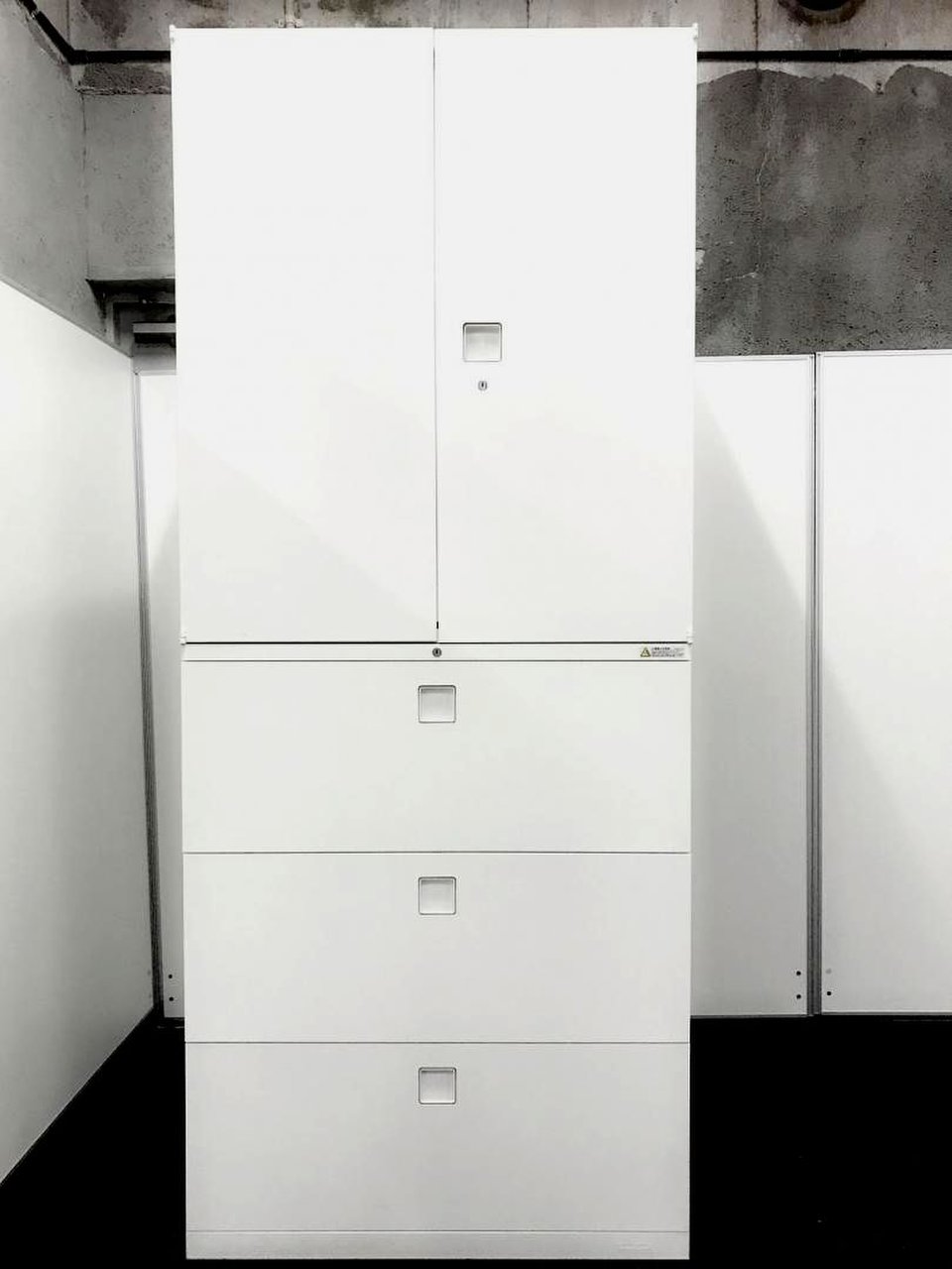 【上下書庫セット】【両開き(上)×3段ラテラル(下)】【オカムラ】【レクトライン】【ホワイト】【4台】