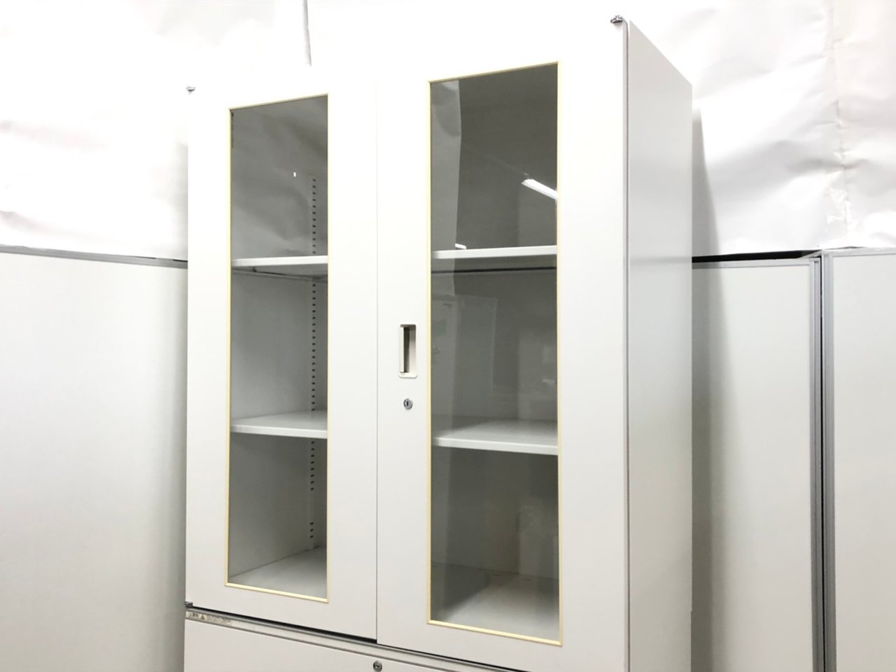 【状態良好】【鍵付き】ほど良い高さ約1738mm下段:2段上段:両開き上下書庫◆イトーキ製