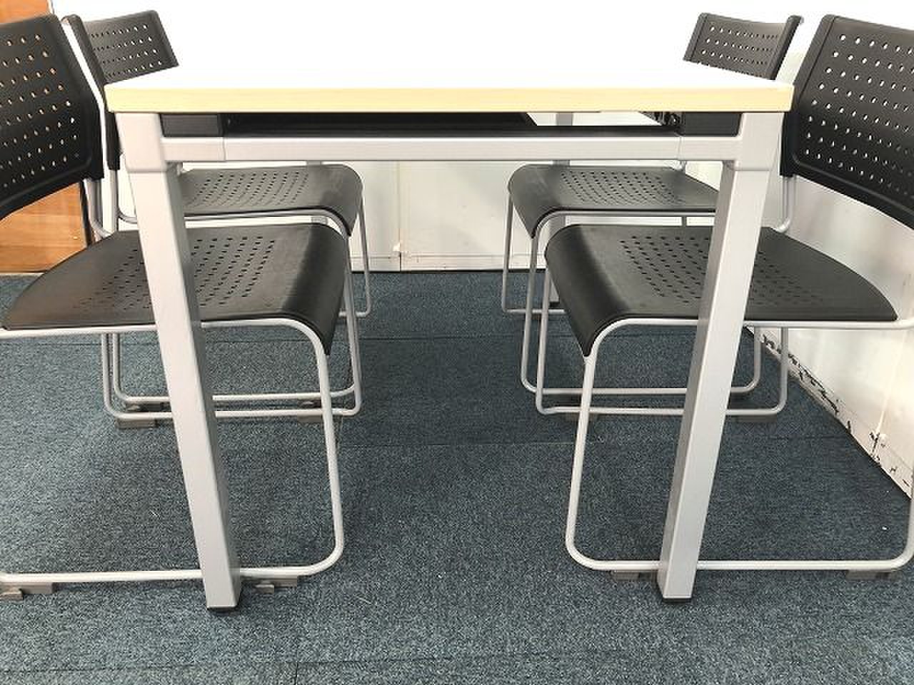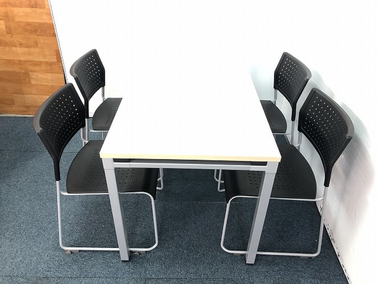 コクヨ製のテーブルとアイリスチトセ製のスタッキングチェア4脚のセット商品の入荷です!!