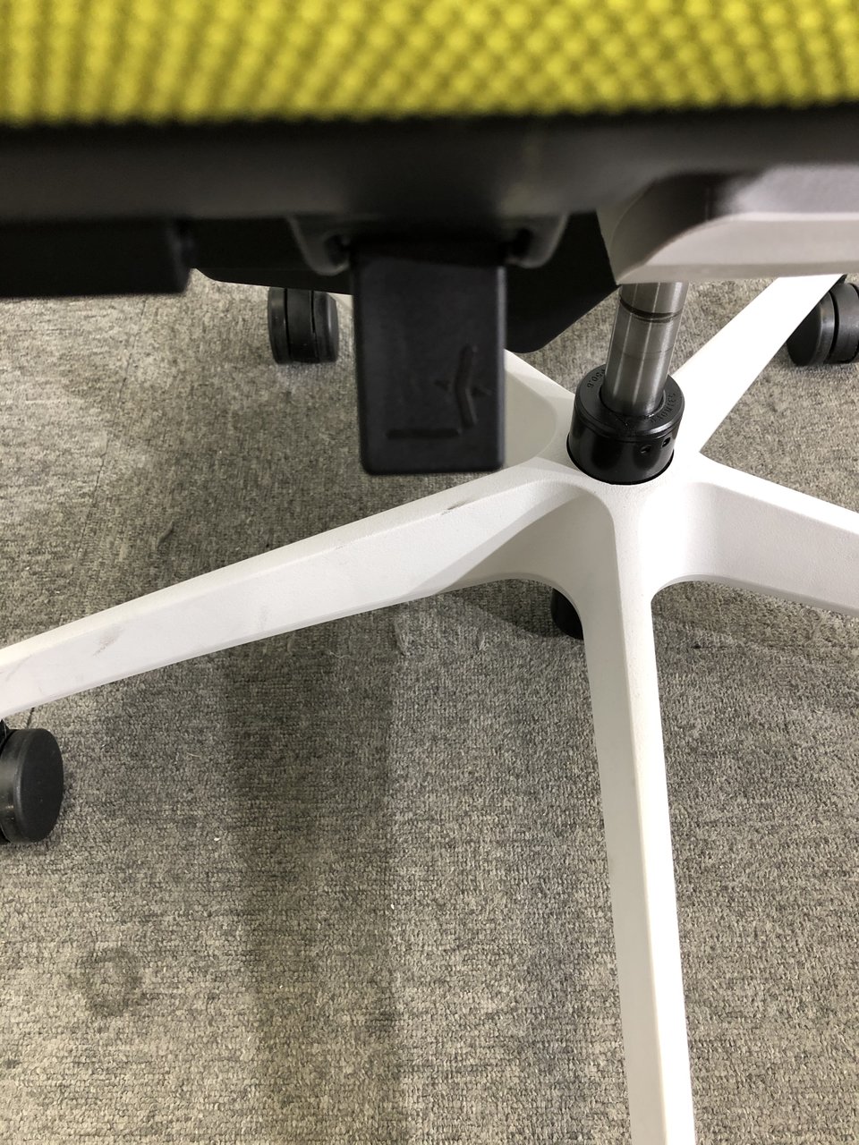 - あり黄ばみ・変色が広い範囲にうっすらある、または濃い黄ばみ・変色が一部ある。(例、座面・背もたれ、脚部等にある。)