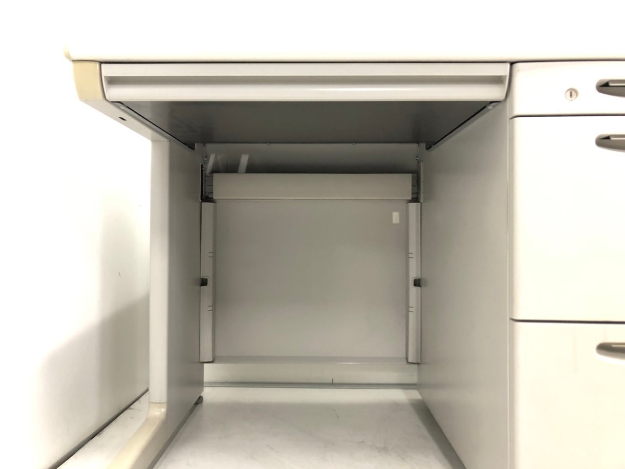 【Aランク】【状態良好!】 オカムラの定番デスクシステムシリーズ! 引出3段で使い勝手便利な片袖机! ※上段引出幅66mm