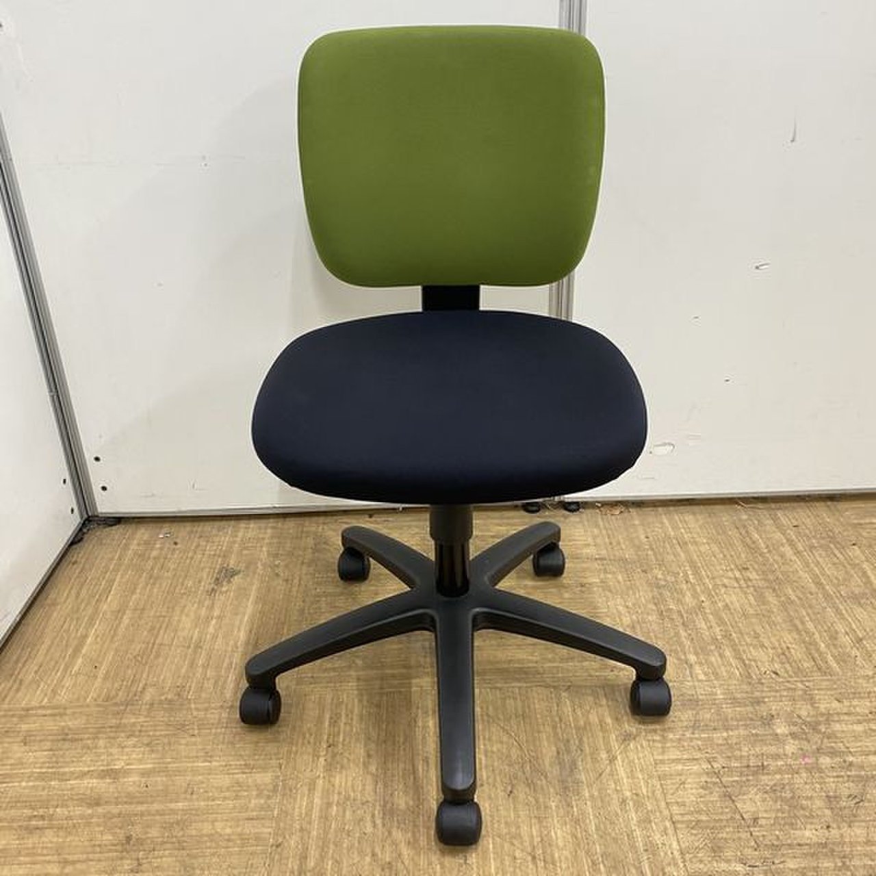 コクヨ製/ブラック×グリーン/イーザ/肘なしローバックチェア