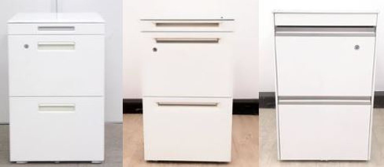 【幅1600mm】さわやかホワイト天板フリアドデスクワゴン2台セット※天板色:ホワイト(MG99)◆オカムラ製- 春日部・越谷店