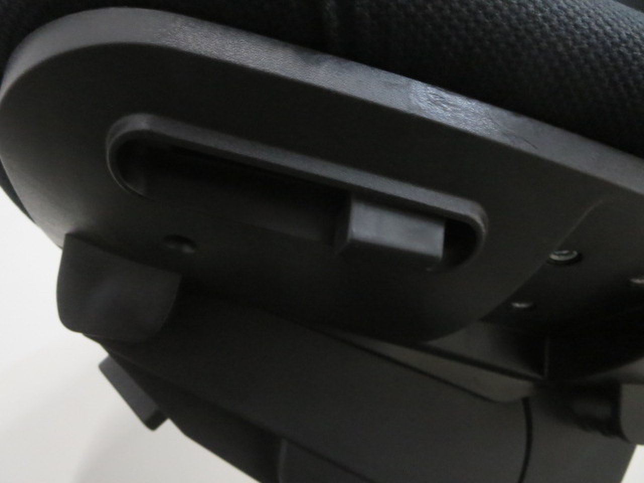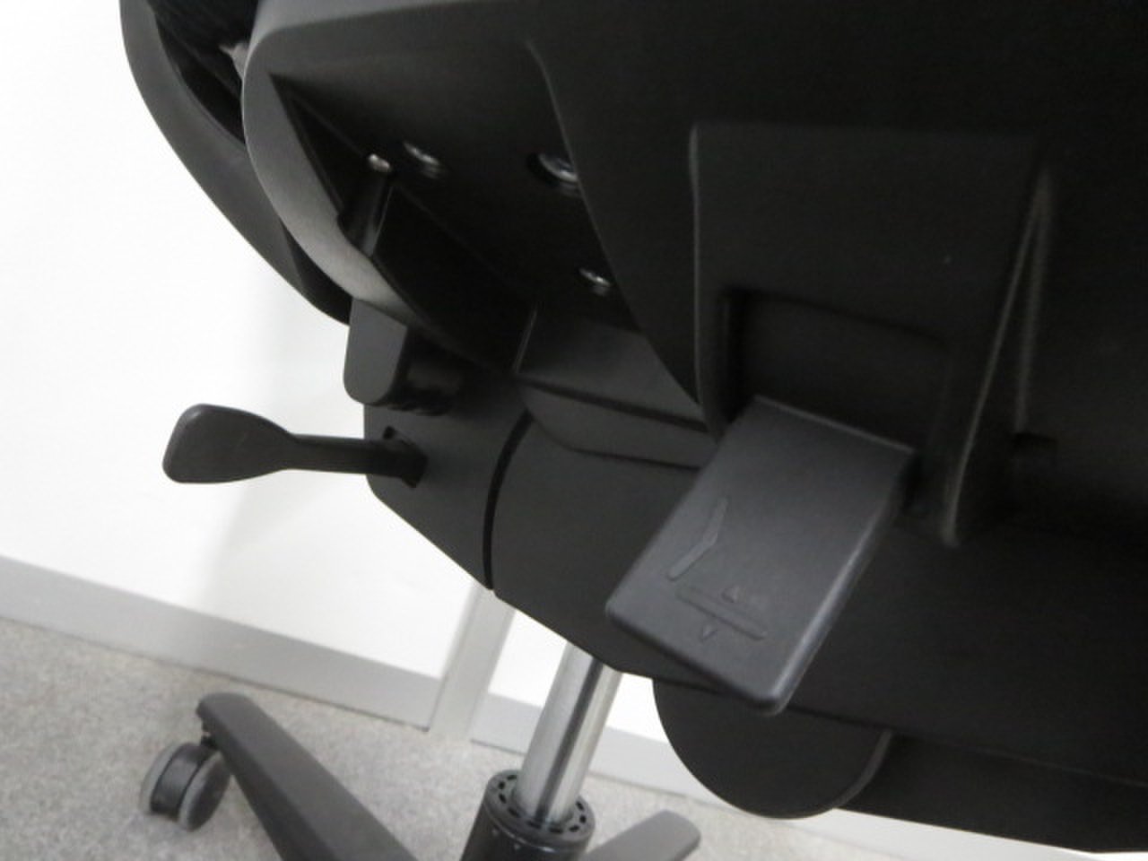 (ファブリック) - レバーを上下させることで、内蔵されたランバーサポートプレートの押し出し量を2段階(15㎜)切り替えることができます。