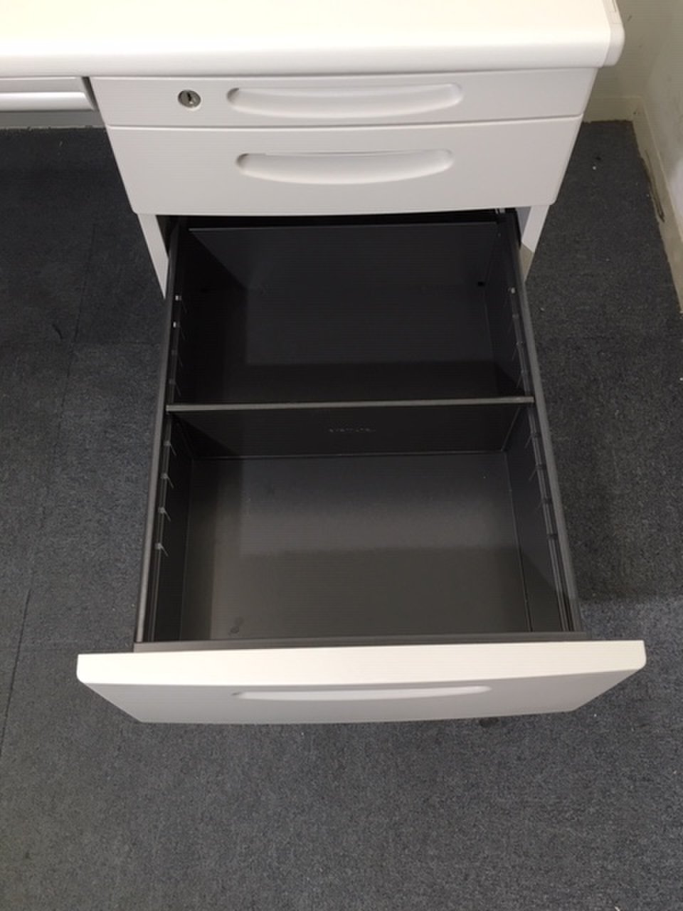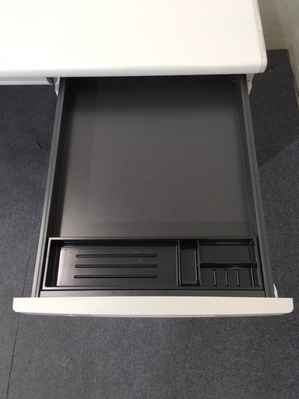 【幅1100㎜】小スペースにオススメのコンパクトサイズオフィスデスク! 引出4段で収納力も抜群です!- 春日部・越谷店