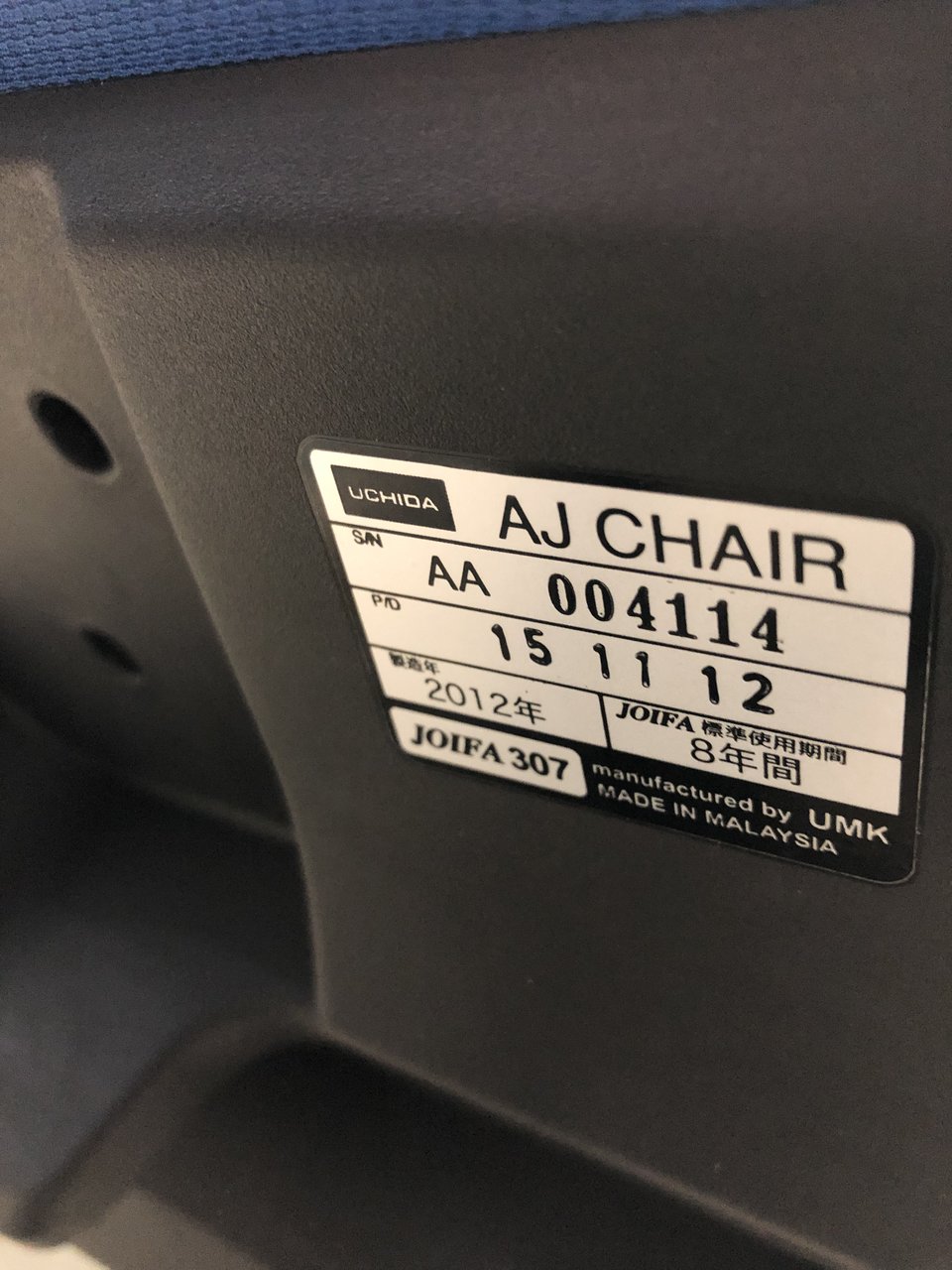 内田洋行 UCHIDA エージェイ AJチェア ブルー×ブラック オフィスの定番カラー ハイバック 樹脂製背面 【中古品】【新大阪】【北区】【淀川区】【北摂】【起業】