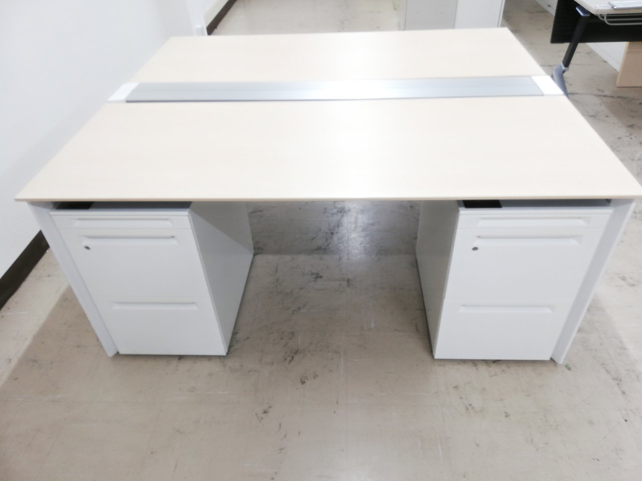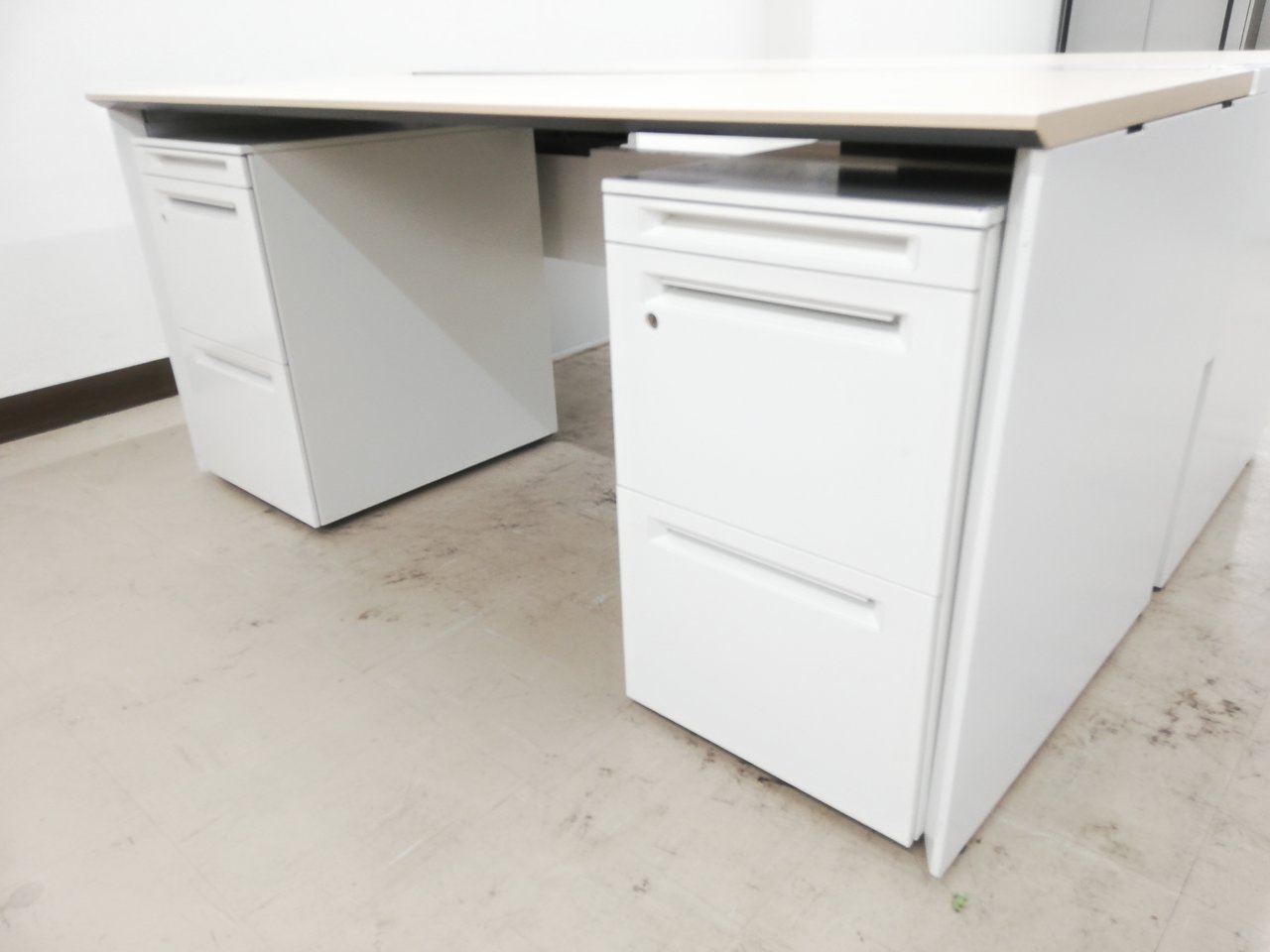 【幅1600mm】■お得なデスク+ワゴンセット■組立簡単!搬入もラクラク■コクヨワークヴィスタ■ナチュラル×ホワイト- 春日部・越谷店