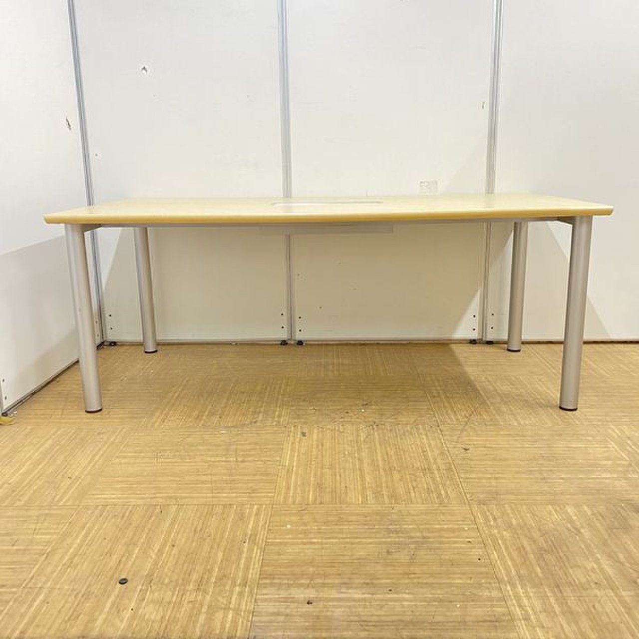 【オンライン会議にもオススメ!】■イトーキ製 ミーティングテーブル(W1800×D900mm) ■配線ボックス付 ナチュラル木目カラー
