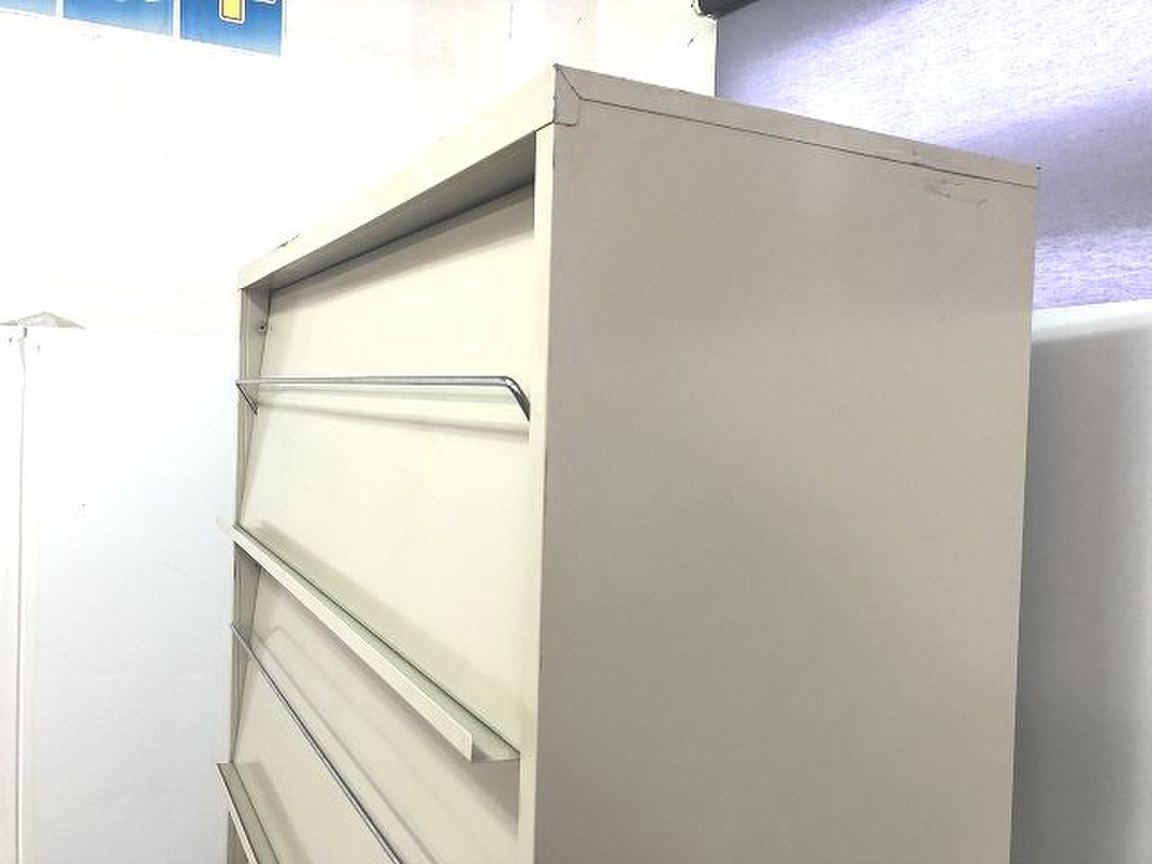 - 一部不具合ありそ引出の開閉不可、施錠不可、棚板無しといったの書庫の本来の効用を果たすための機能以外の一部が使用不可(例、扉、引出の開閉がしづらいなどがある。 )