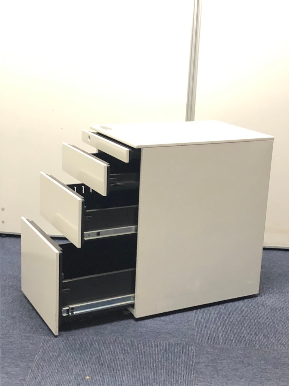 - 一部不具合ありその脇机・ワゴンの本来の効用を果たすための機能以外の一部が使用不可な状態。(例、引出が開閉しづらい、 キャスターロック機能使用不可、ラッチ不良 等がある。)