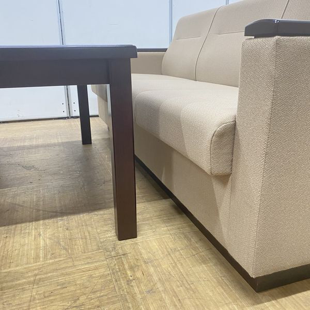 - 若干ありソファの場合、破け、ホツレ、へたり、しわ等が一部ある。(例、背もたれ、肘かけ、座面等にある。)センターテーブルの場合、傷・凹みが一部ある。(例、天板、 脚にある。)