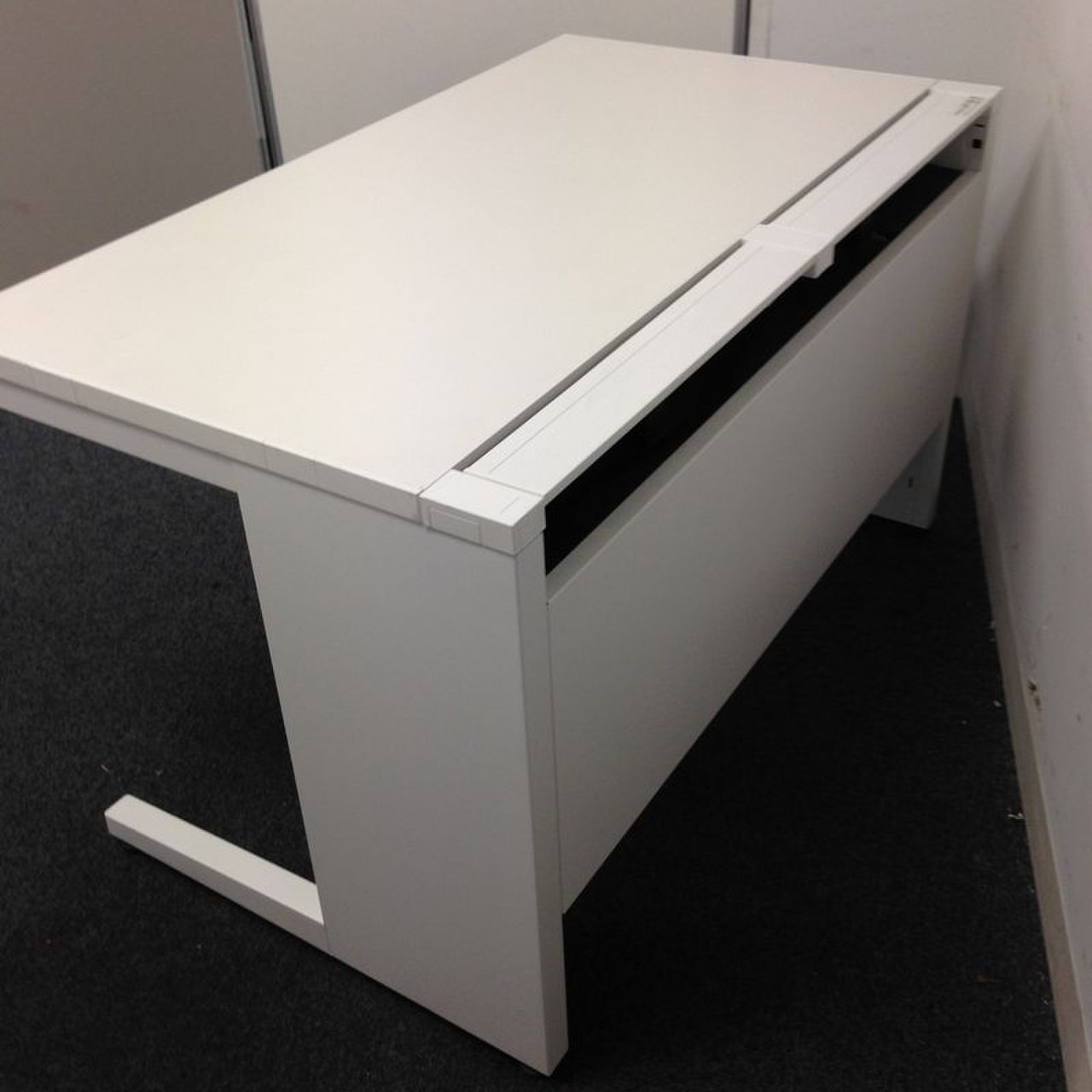 【珍しい引き出しに鍵付き!】ホワイト色の幅1200mの平机!- 千葉店