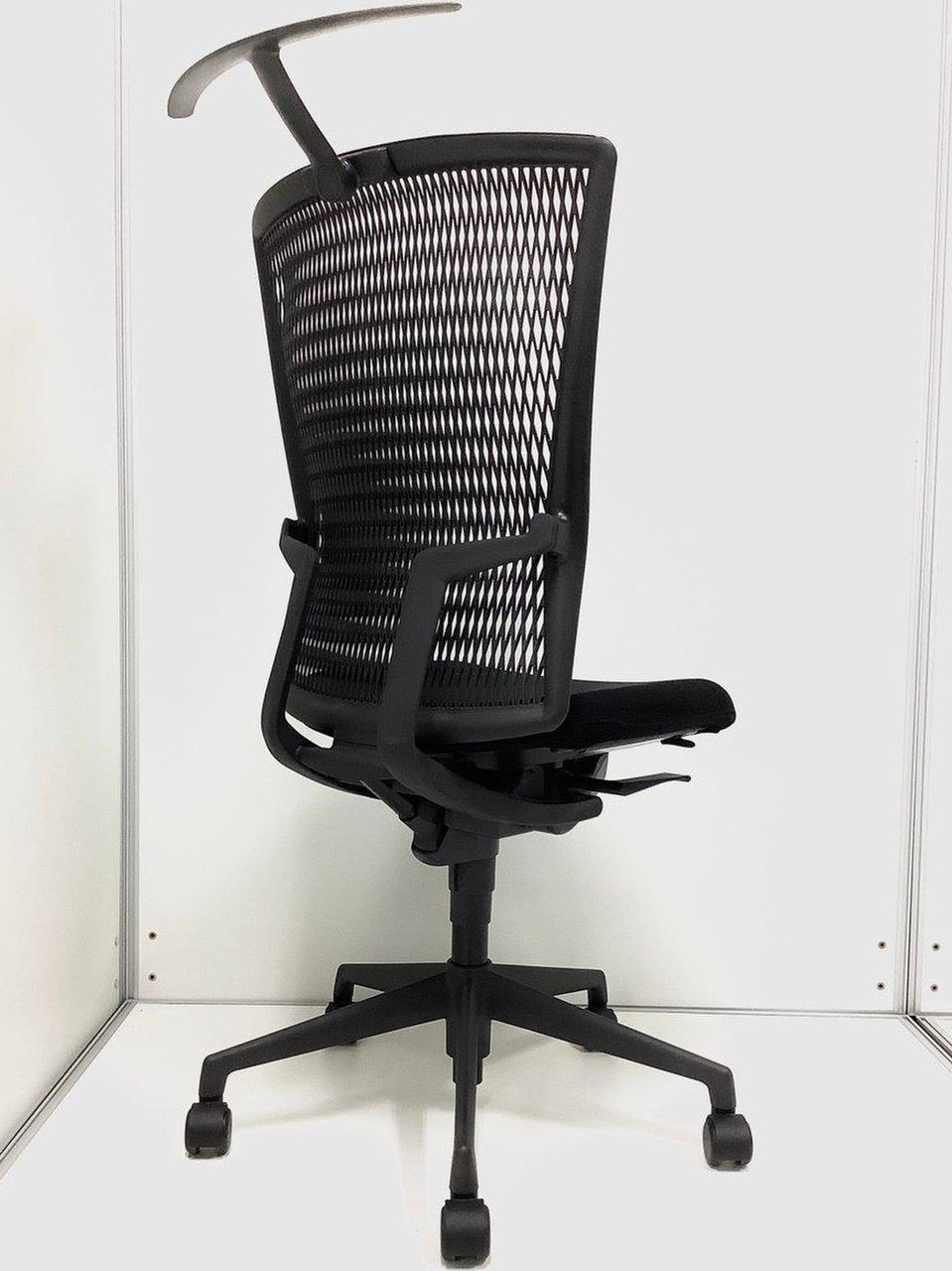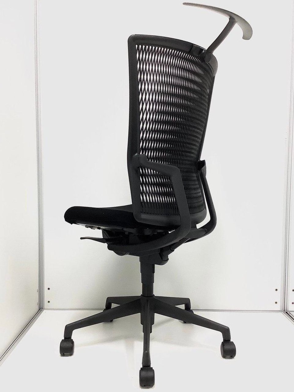 ★【ブラックの背面メッシュチェア】珍しい背面樹脂タイプ/ ハイバック仕様■内田洋行/アクトディア