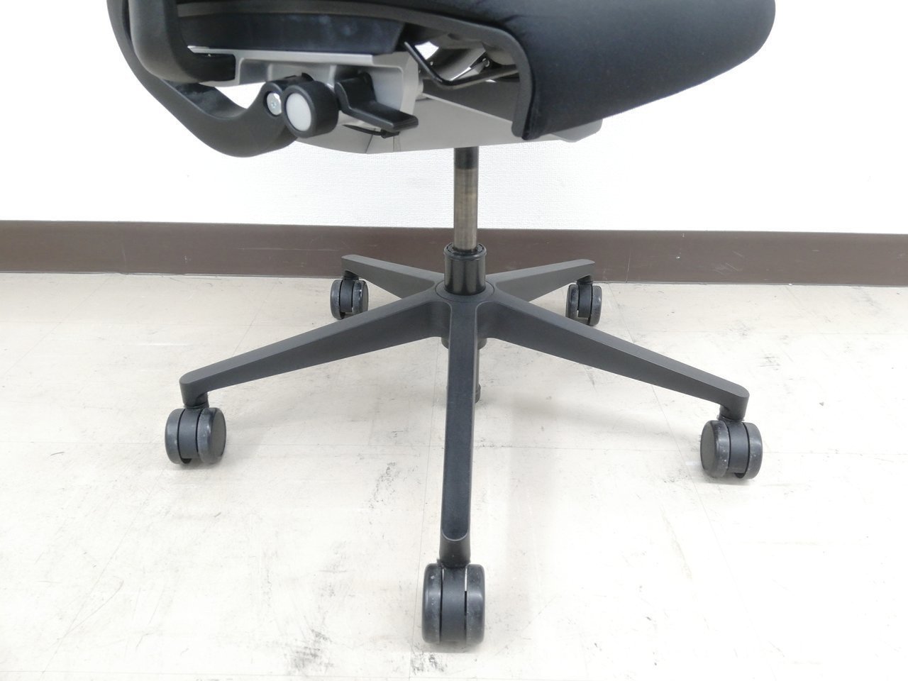 快適な座り心地に不可欠な調節機能である、上下昇降、座面の奥行き調整、リクライニングなどを備えており、操作もわかりやすく好評です。 特に、座面の奥行きは、座面下の左右に通った細いバーで調整でき、座ったままで軽やかに滑るように調整が可能です。 価格面では、新品では高めですが、中古は流通も多く、定価の3割前後の価格で高級チェアの座り心地を手に入れることができます!