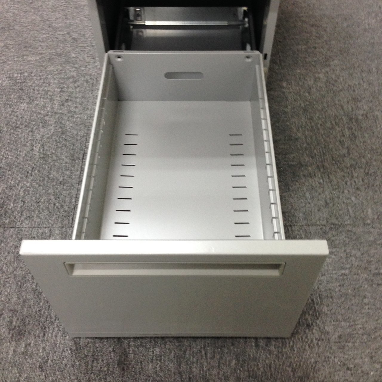- 一部不具合ありその脇机・ワゴンの本来の効用を果たすための機能以外の一部が使用不可な状態。(例、引出が開閉しづらい、 キャスターロック機能使用不可、ラッチ不良 等がある。)