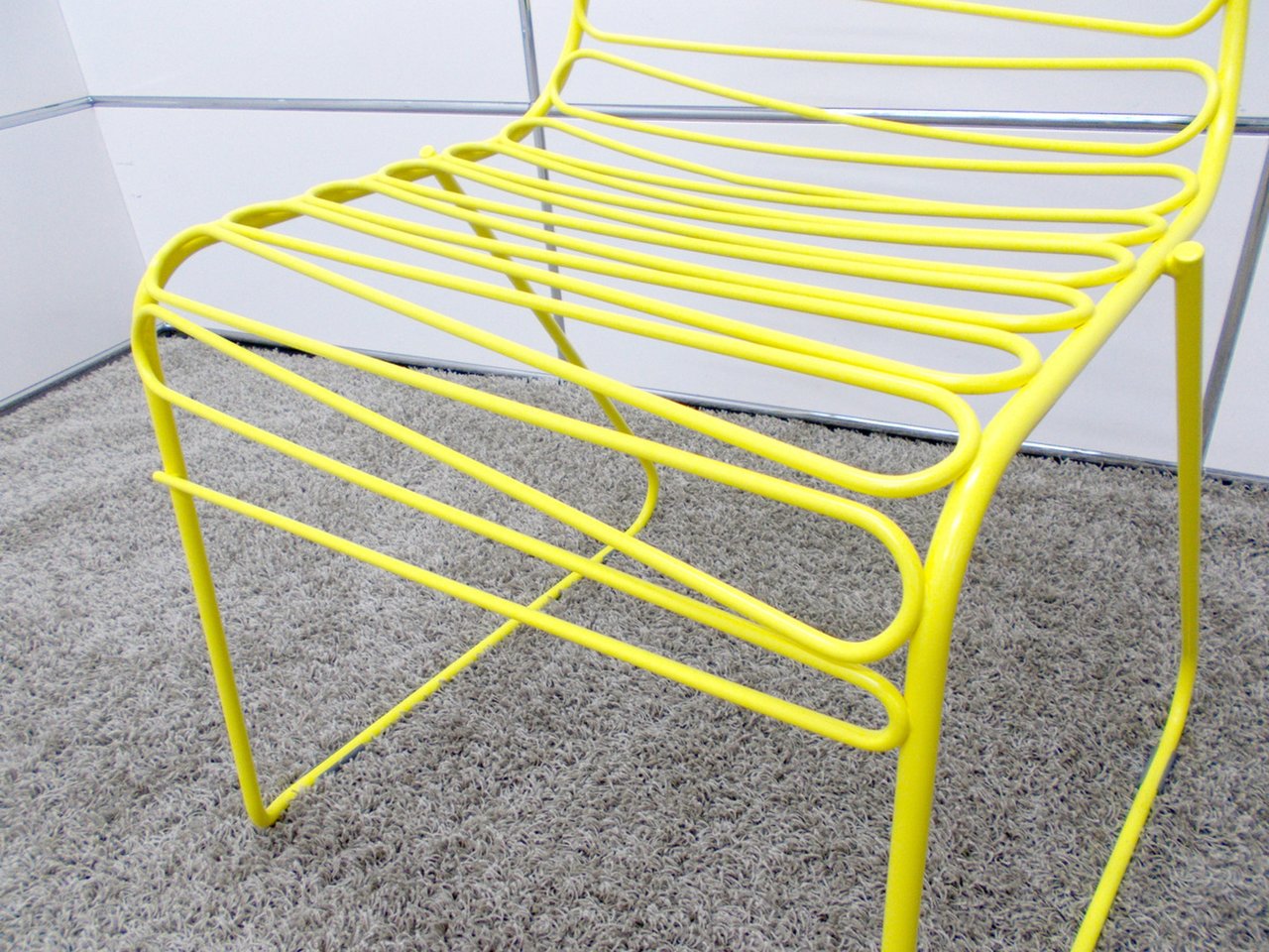フレームの線で1本、中の蛇行する線で1本の合計2本のワイヤーで作られており、レーザー光線のようにも見える不思議なデザインです。