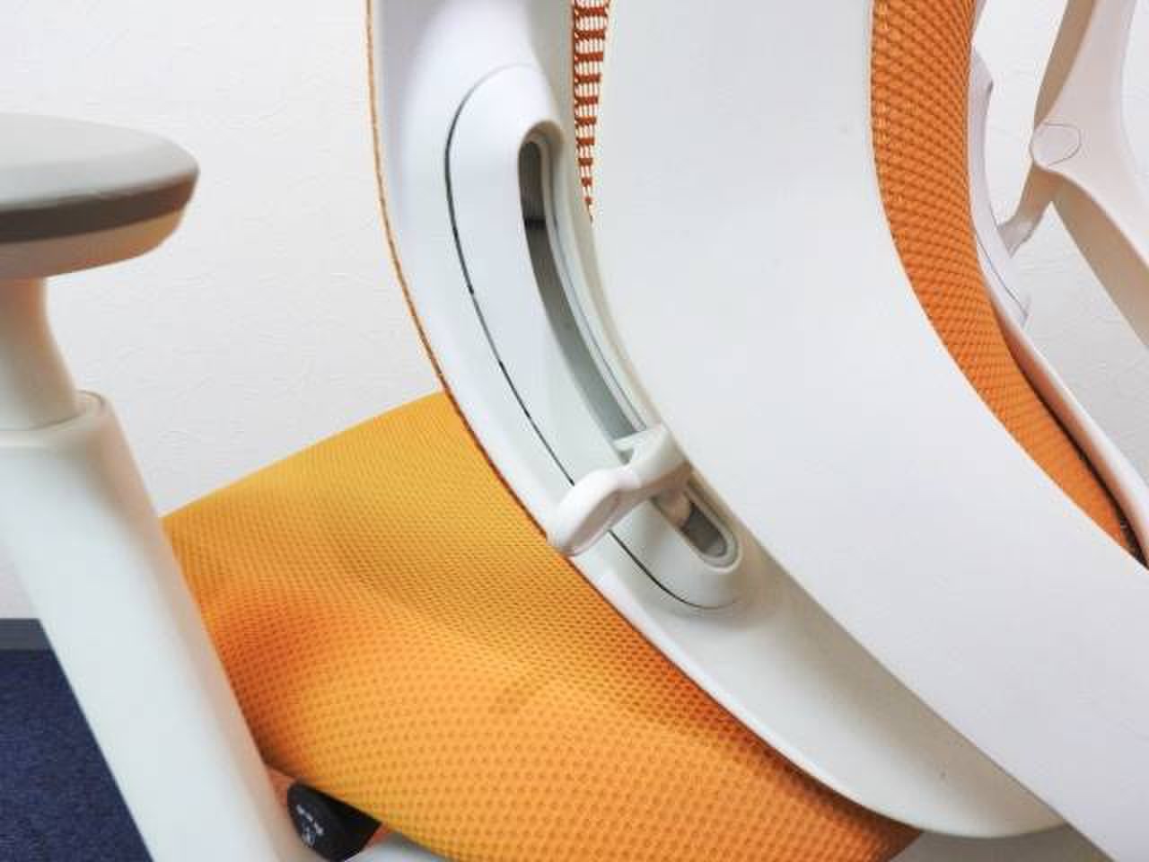 - 座面右下のダイヤル操作で、リクライニングの強弱調整が行えます。これまでのダイヤル式よりも、少ない回転数で、最弱?最強の調整が可能です。