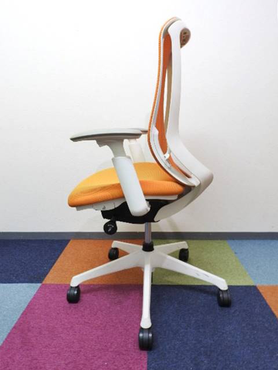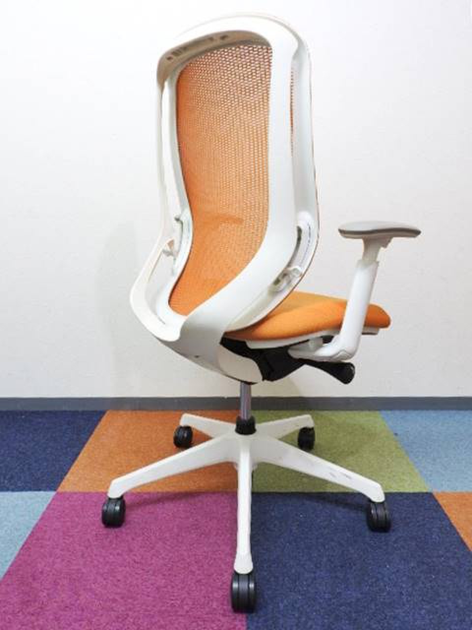 オカムラ製 シルフィーチェア オレンジ色 肘付きハイバックチェア 可動肘 メッシュタイプ レア ロット