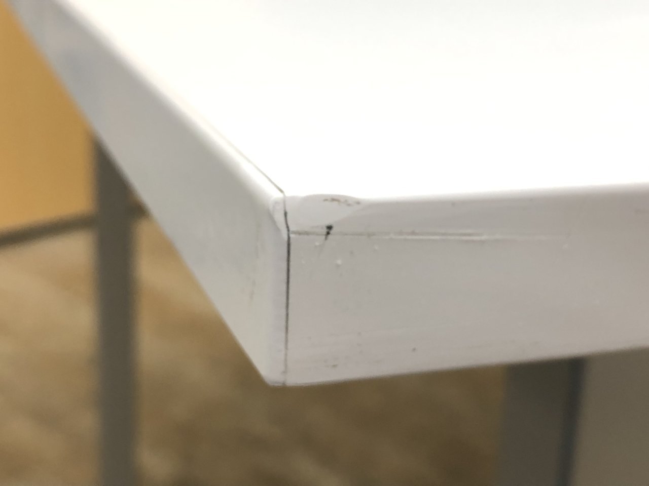 - 壊れている天板歪み、アジャスター無し、キャスター使用不可のようにそのテーブルの本来の効用を果たすための機能に不具合がある。