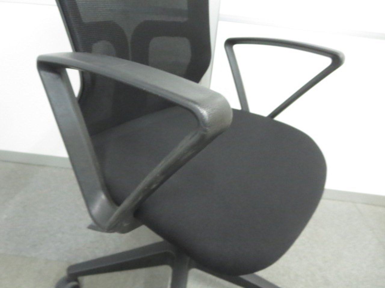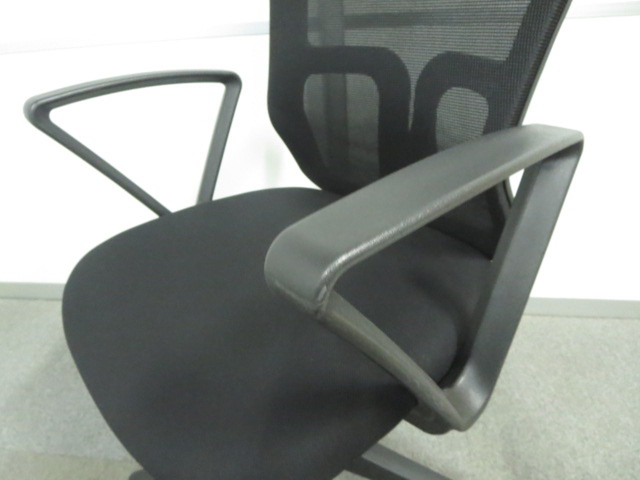 【未開封品がお買い得!】■メッシュバックチェア 肘付 ブラック【おつとめ品】【J】