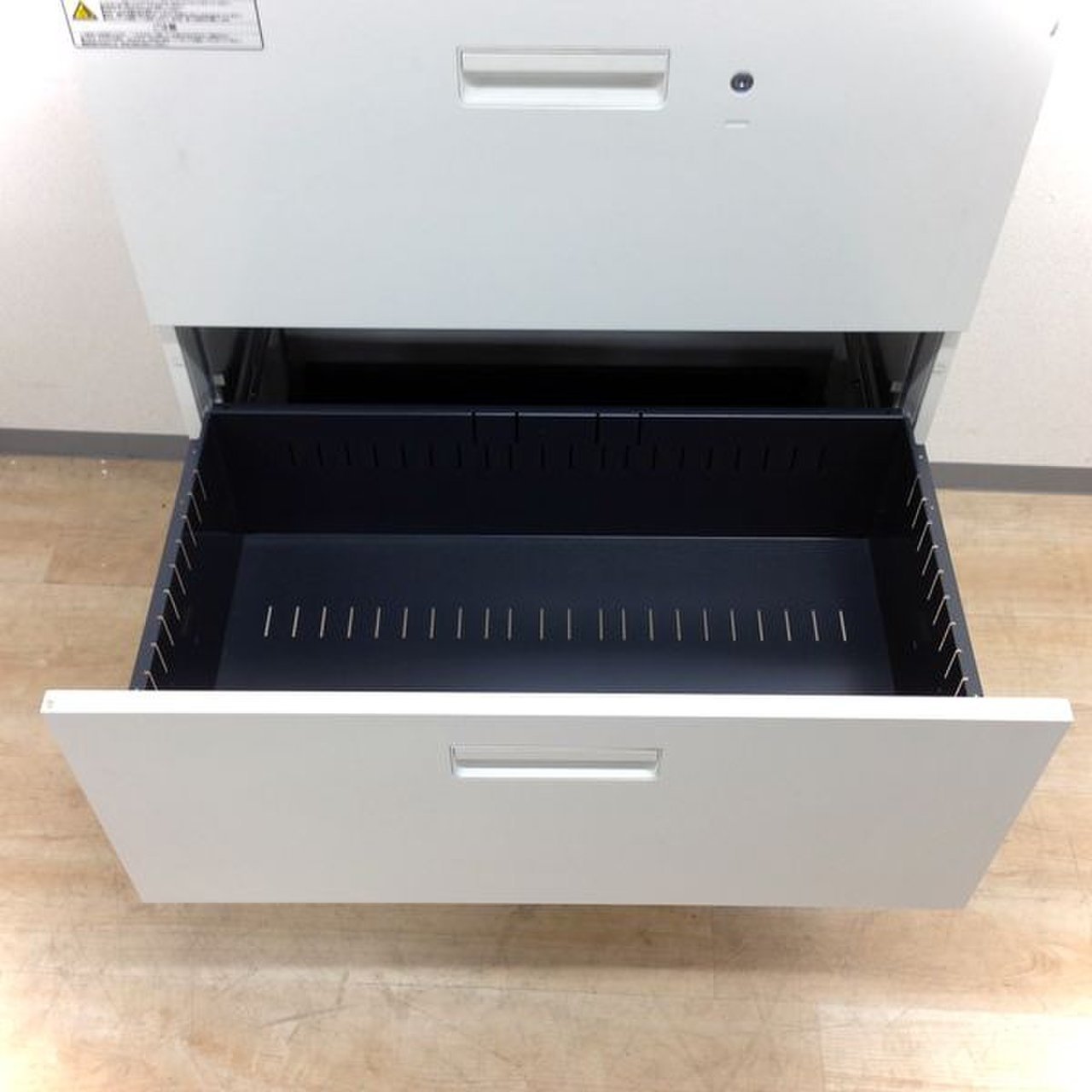 - 一部不具合ありそ引出の開閉不可、施錠不可、棚板無しといったの書庫の本来の効用を果たすための機能以外の一部が使用不可(例、扉、引出の開閉がしづらいなどがある。 )