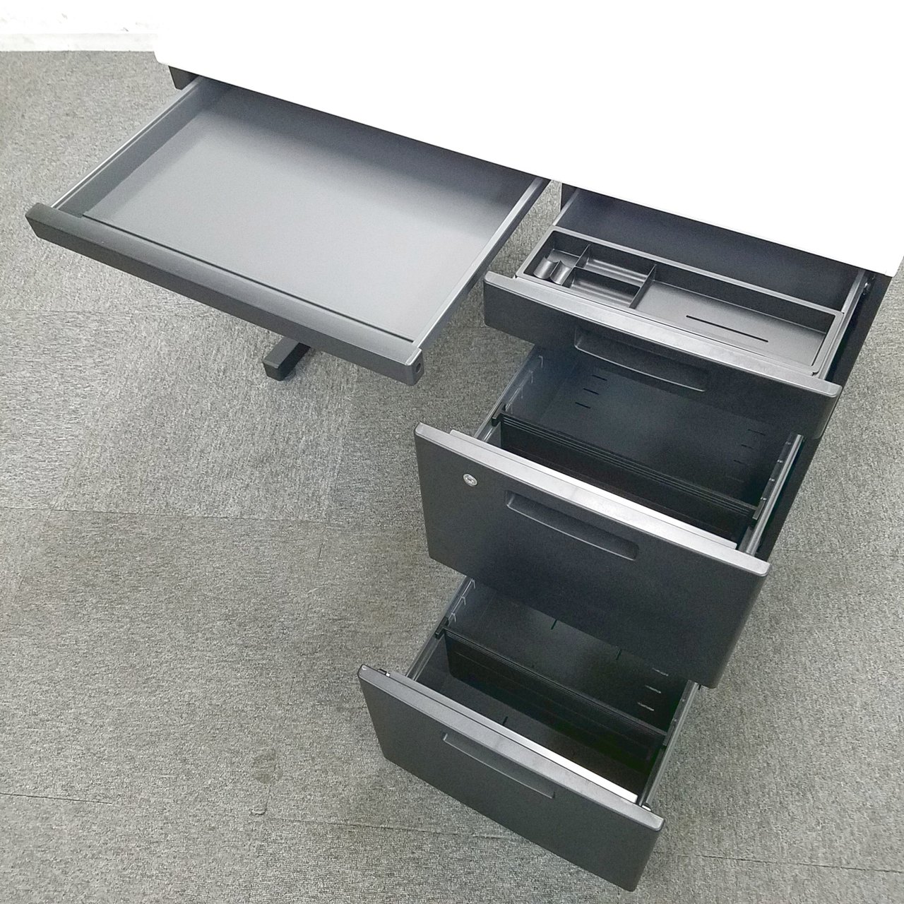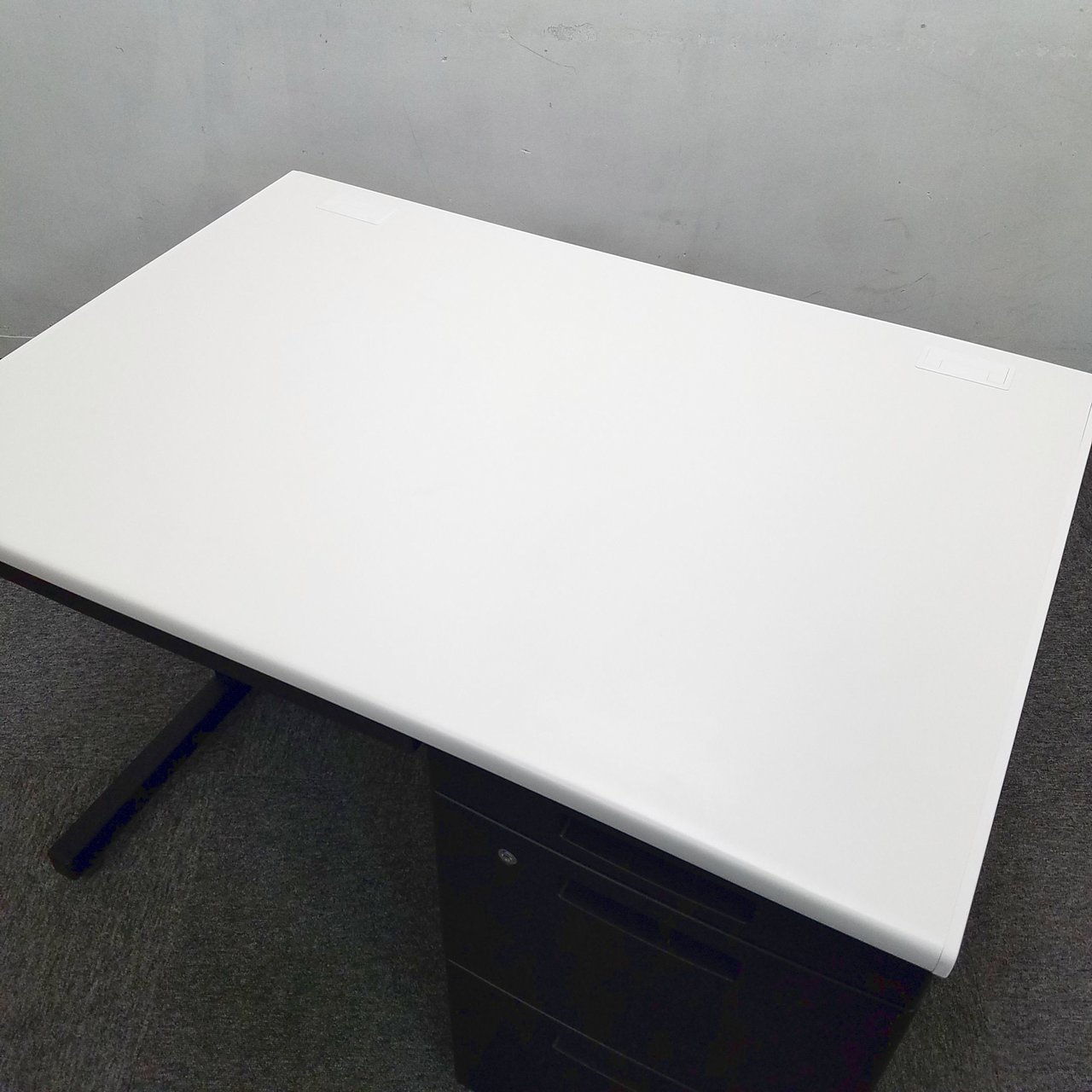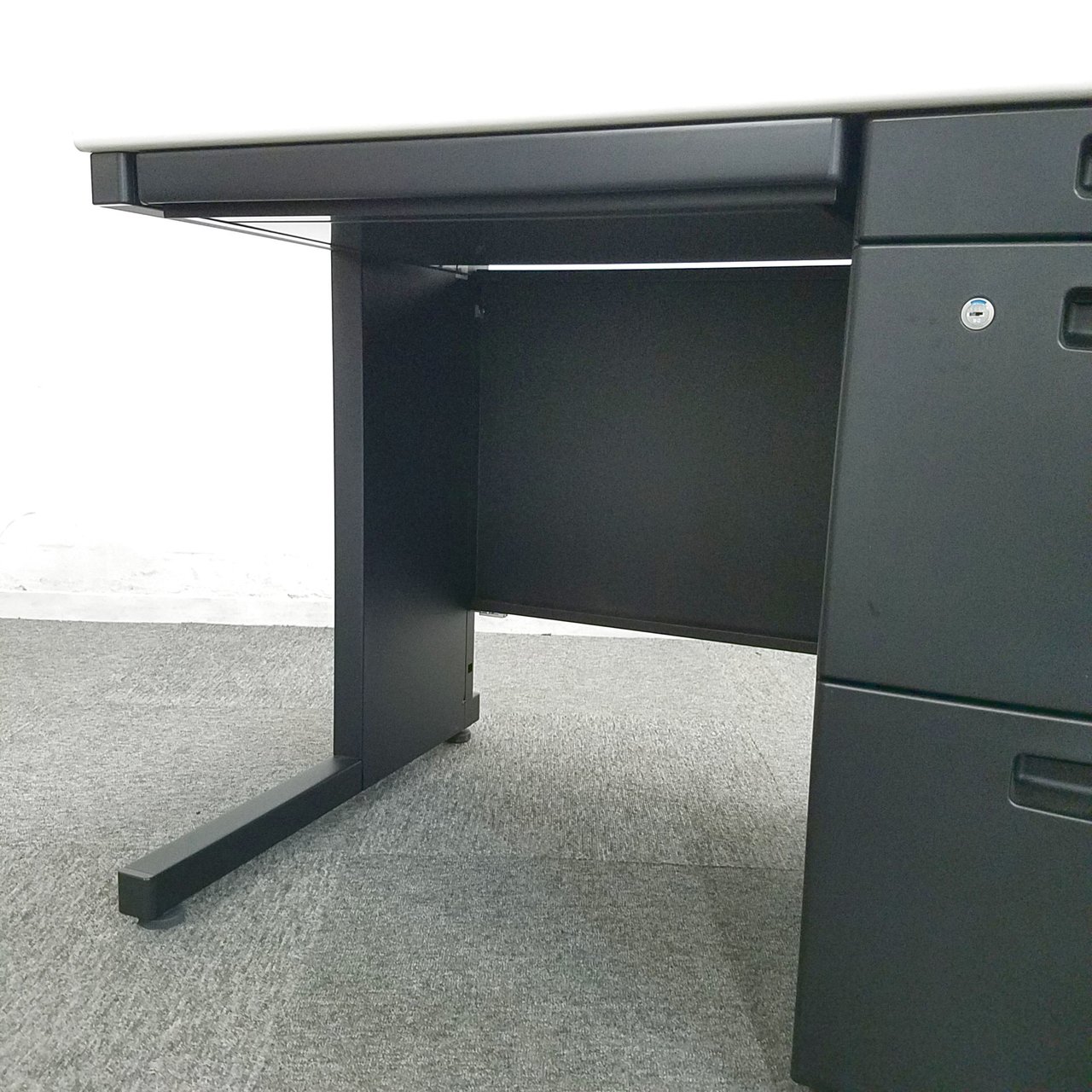 最近オフィスで流行りのブラック色で非常に人気のデスクになります。