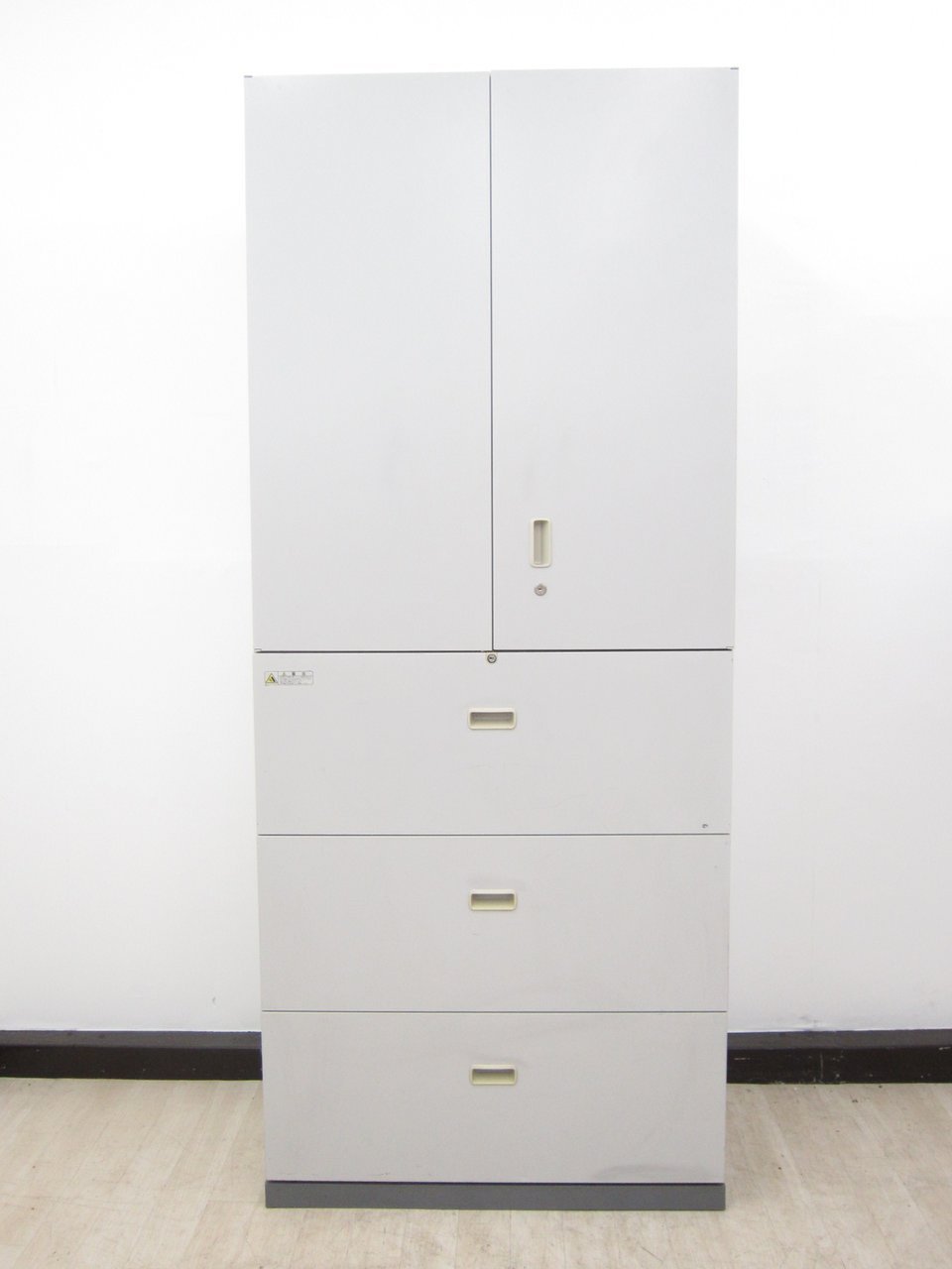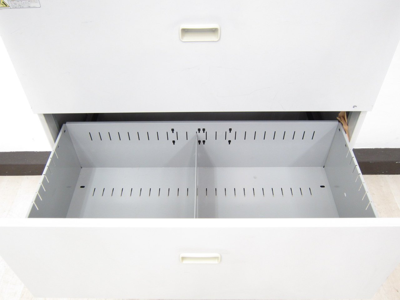 - 一部不具合ありそ引出の開閉不可、施錠不可、棚板無しといったの書庫の本来の効用を果たすための機能以外の一部が使用不可(例、扉、引出の開閉がしづらいなどがある。 )