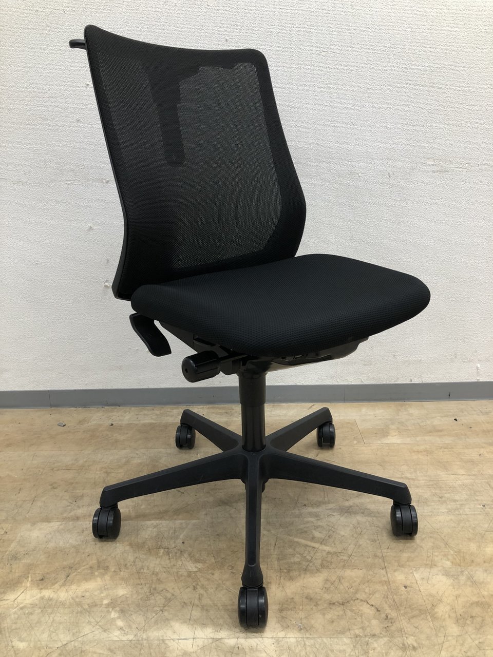 【人気商品入荷!】オカムラ製 フルーエント 肘無しチェア【ブラック・背面メッシュ】【多機能】
