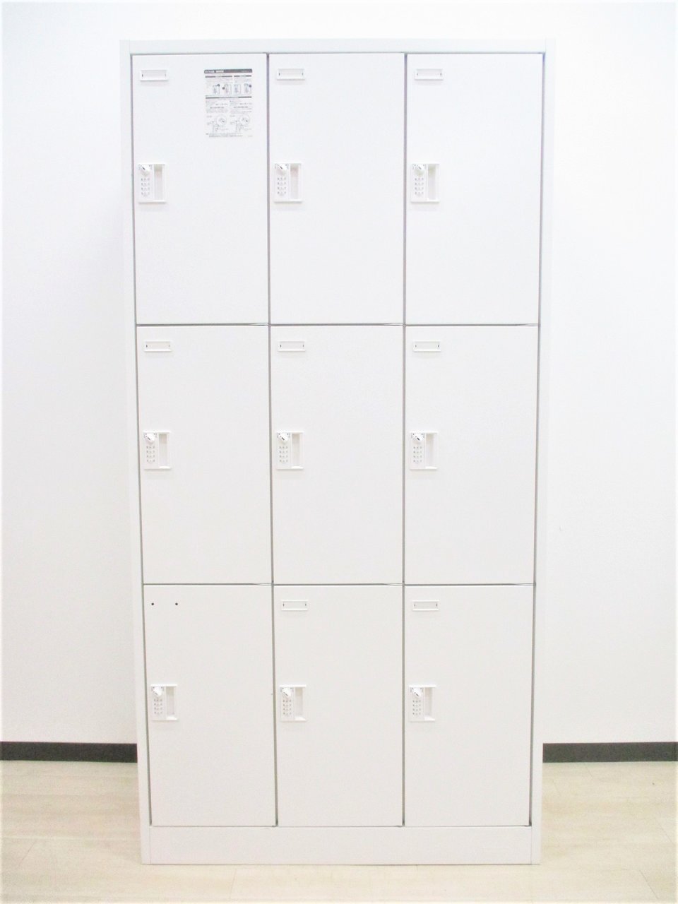 【中古希少品 定価約19万!】【最大15台集まります】仕切り無し ダイヤル錠9人用ロッカー![ホワイト]- 千葉店