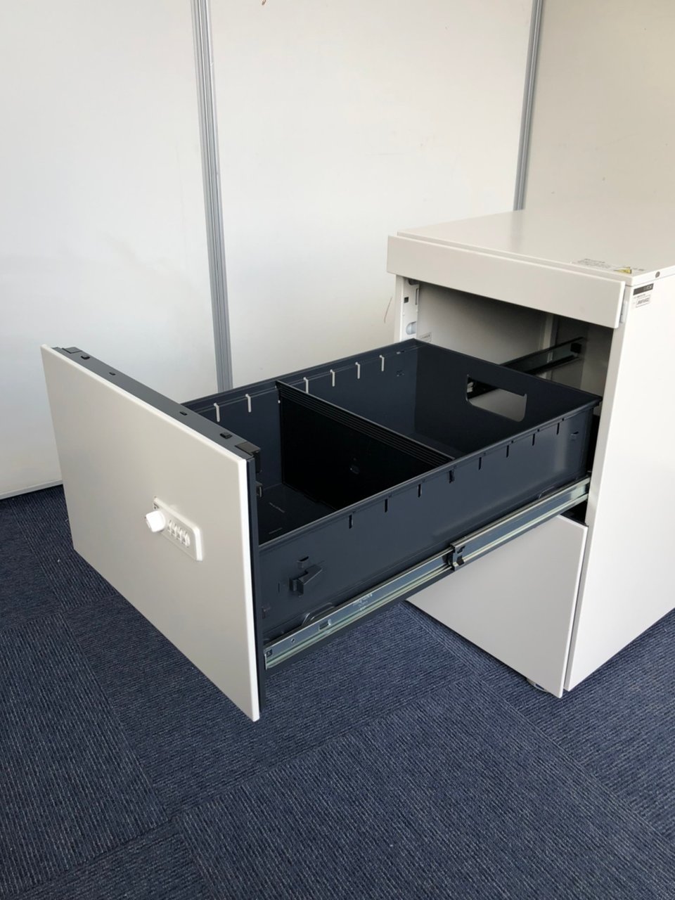 - 一部不具合ありその脇机・ワゴンの本来の効用を果たすための機能以外の一部が使用不可な状態。(例、引出が開閉しづらい、 キャスターロック機能使用不可、ラッチ不良 等がある。)