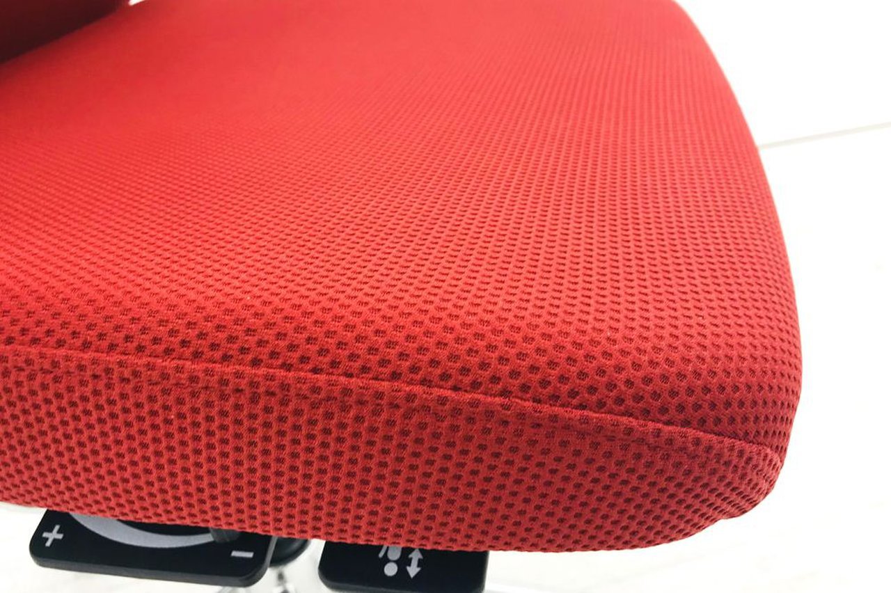 座面は異硬度クッションとなっており、手前は太ももを圧迫することのない柔らかさ、奥にいくつれて段階的に硬くなりしっかりとヒップを支えてくれて、長時間座った状態での疲労を軽減してくれます。