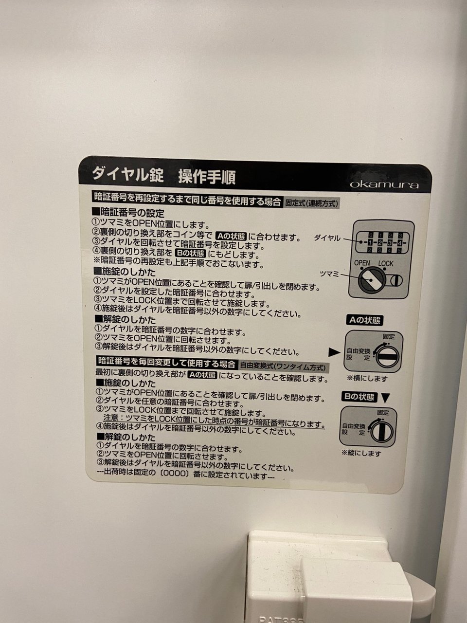 - 好調そのロッカーに備わっている全ての機能が使用可能