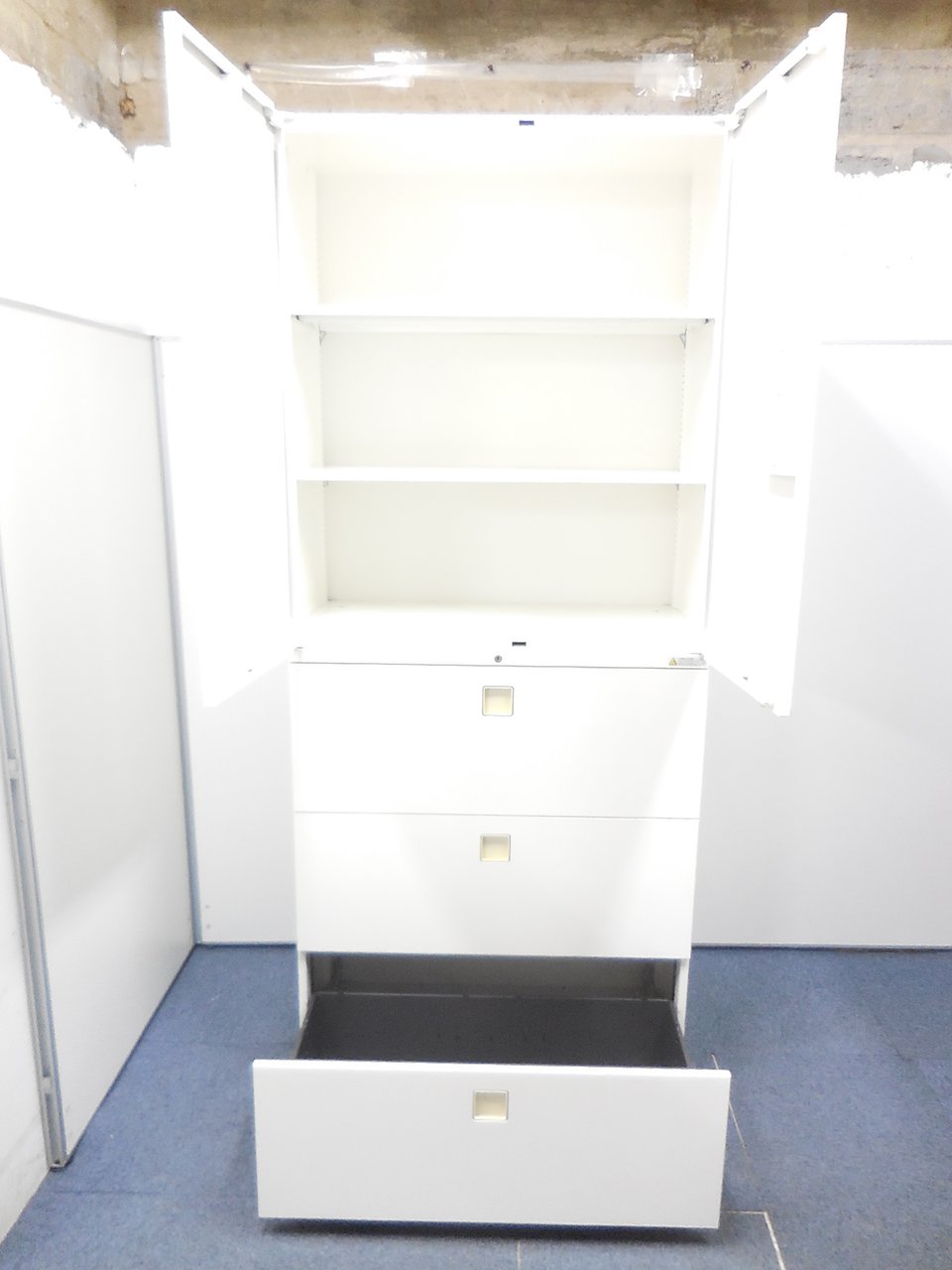 【上下書庫セット】【両開き(上)×3段ラテラル(下)】【オカムラ】【レクトライン】【ホワイト】【4台】