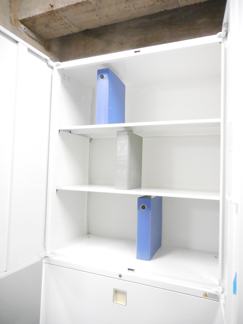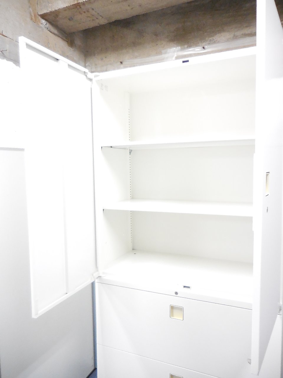 - 一部不具合ありそ引出の開閉不可、施錠不可、棚板無しといったの書庫の本来の効用を果たすための機能以外の一部が使用不可(例、扉、引出の開閉がしづらいなどがある。 )