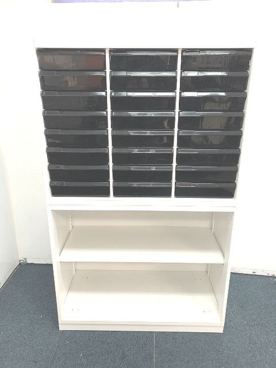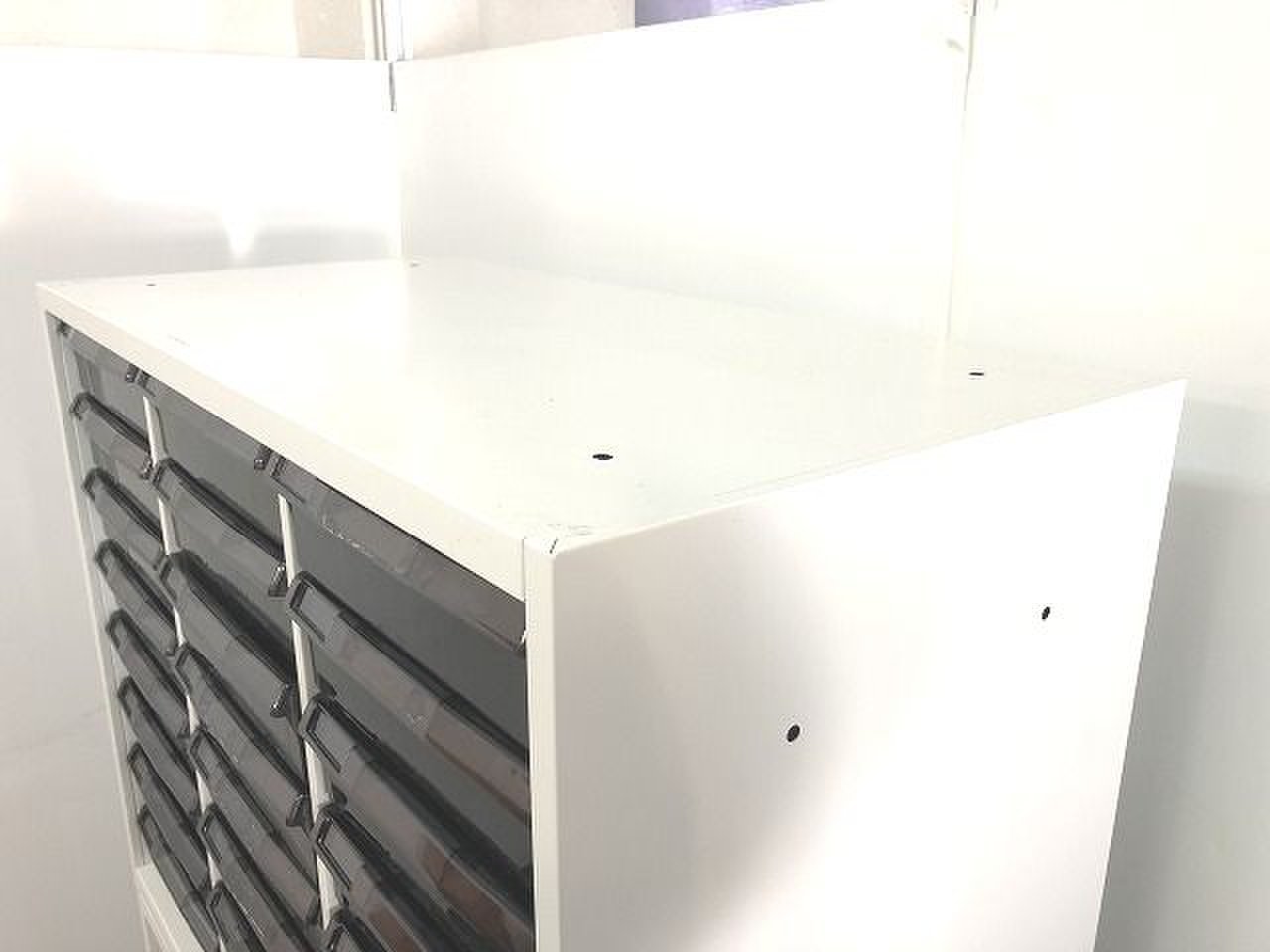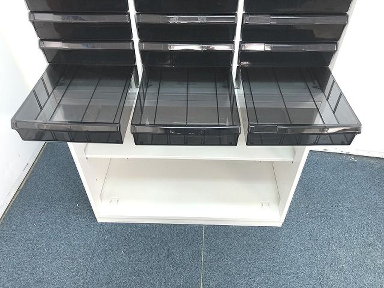 - 一部不具合ありそ引出の開閉不可、施錠不可、棚板無しといったの書庫の本来の効用を果たすための機能以外の一部が使用不可(例、扉、引出の開閉がしづらいなどがある。 )