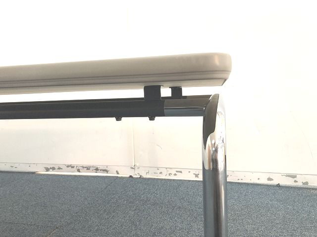 - 一部不具合あり天板歪み、アジャスター無し、キャスター使用不可ようなそのテーブルの本来の効用を果たすための機能以外の一部が使用不可な状態。(例、キャスターロッ ク機能使用不可、棚板無し等がある。)