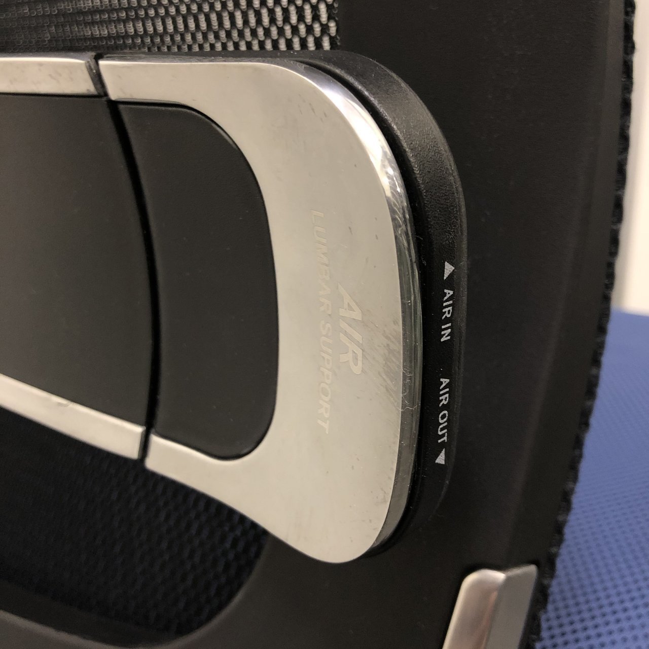 - 自由に変形し、力を分散させながら反発する空気の特性によって腰をサポート。ランバー部の前後幅は0~40mm、上下幅は100mmの調整が可能で、個人個人の異なる背骨形状にフィットします。