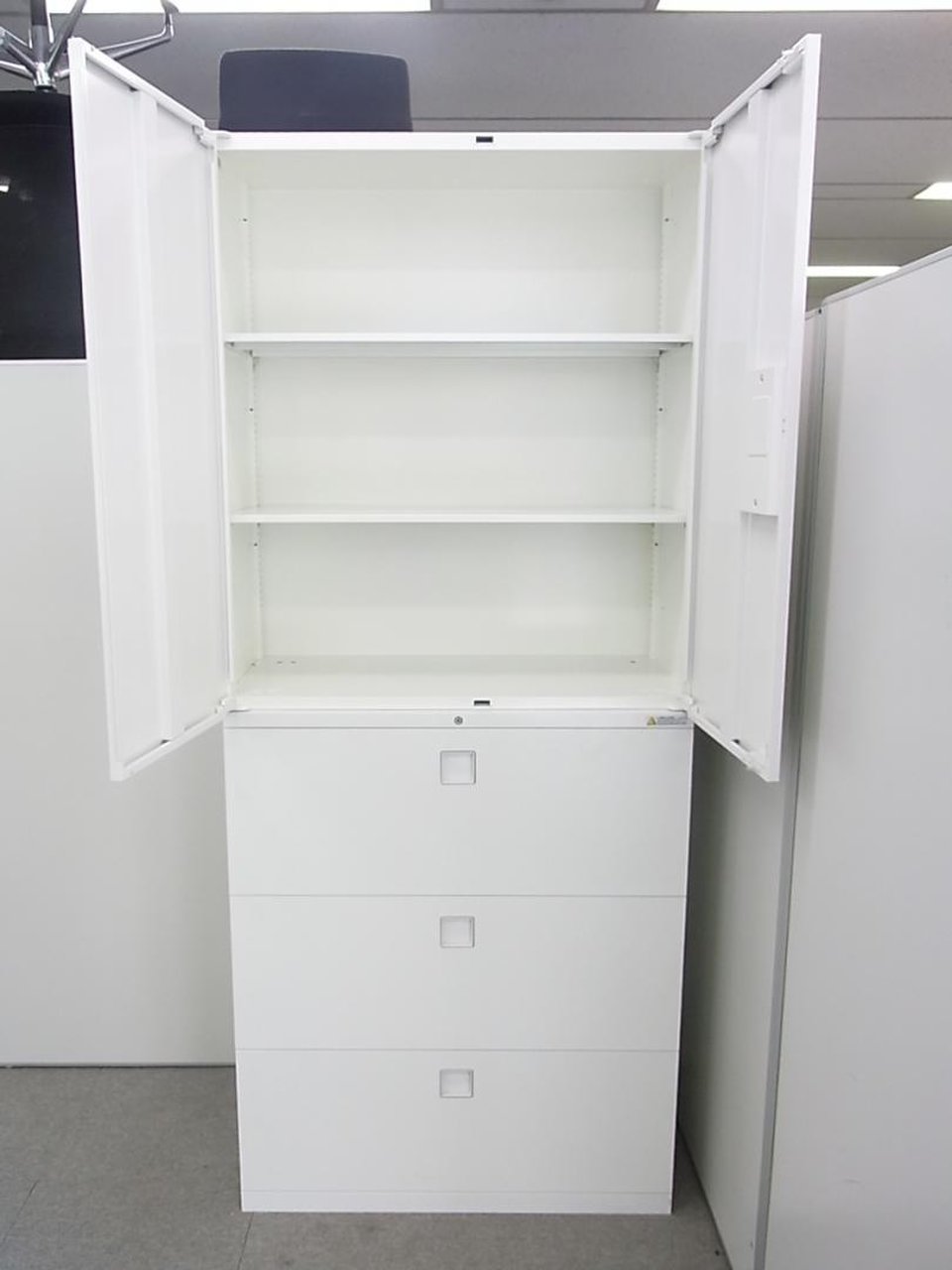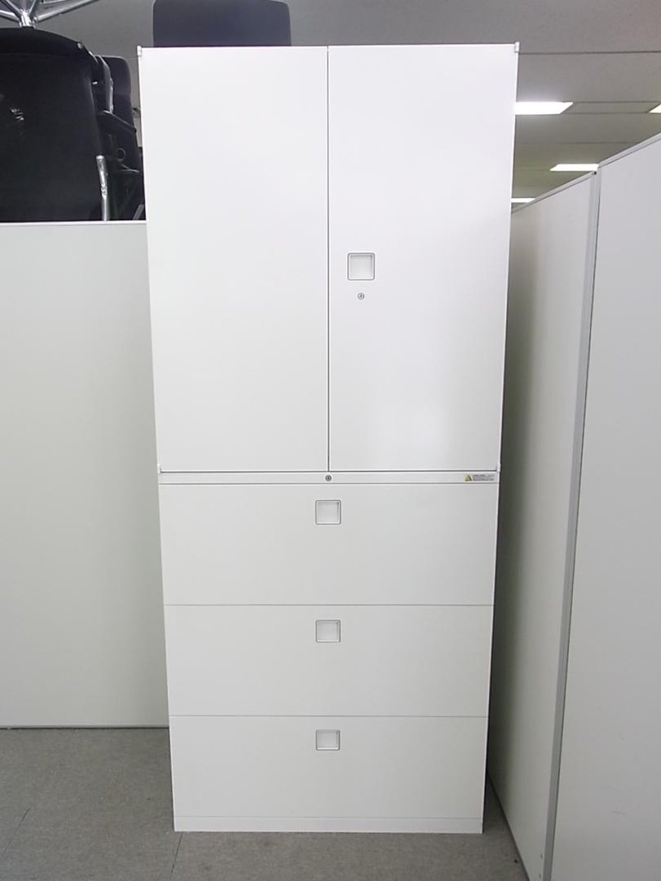 【上下書庫セット】【両開き(上)×3段ラテラル(下)】【オカムラ】【レクトライン】【ホワイト】【4台】在庫がある店舗一覧