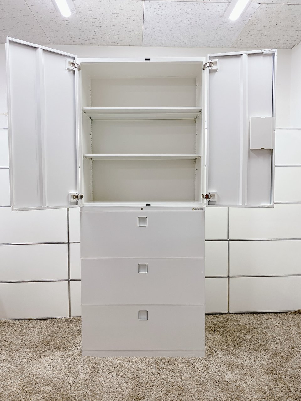 【上下書庫セット】【両開き(上)×3段ラテラル(下)】【オカムラ】【レクトライン】【ホワイト】【4台】