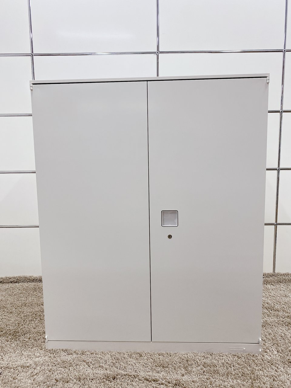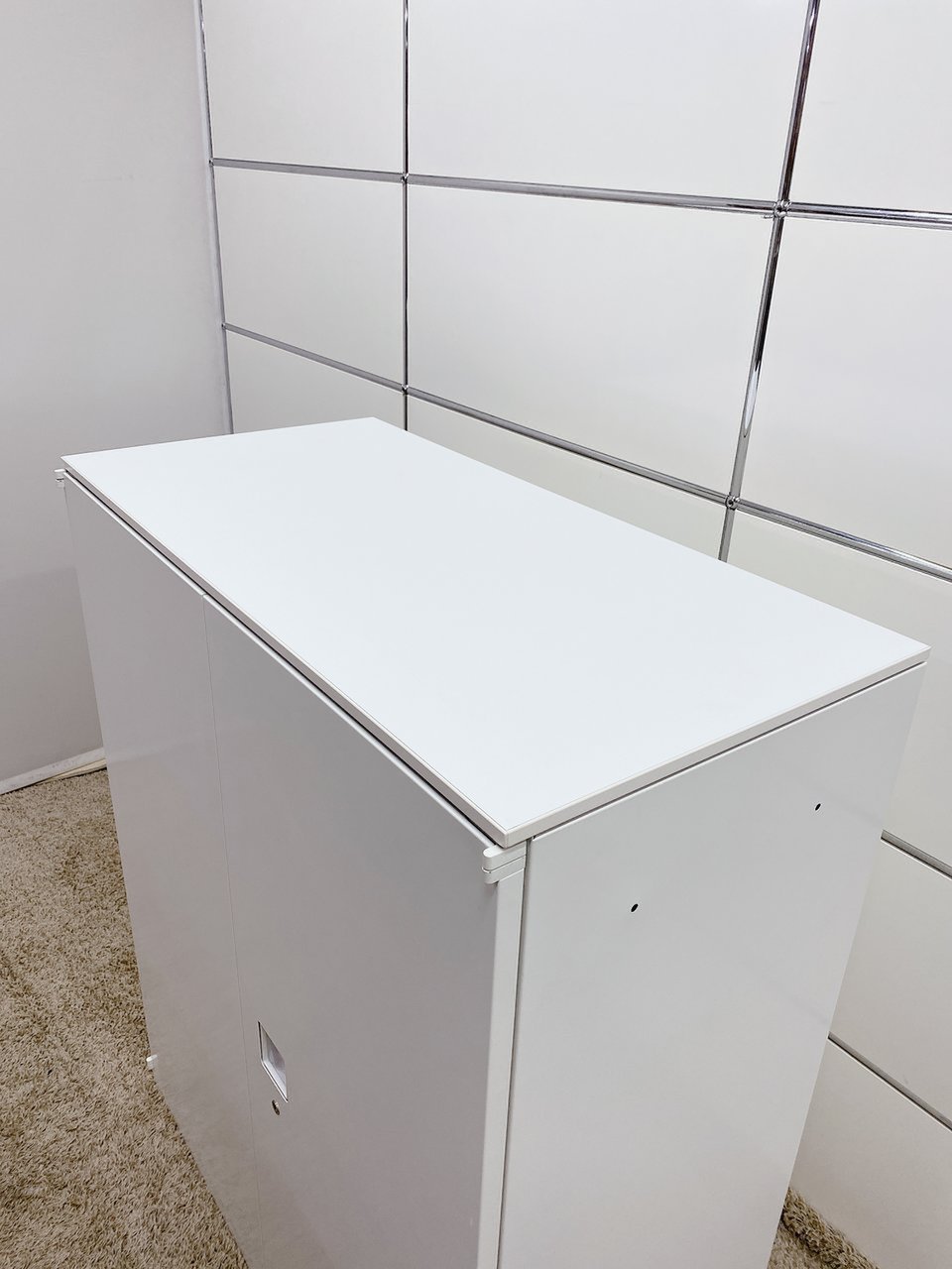 【定価約9万円!!マルチアクセスハンドルで開閉がラクラクです!!ホワイトカラー両開き書庫!!オシャレな天板付き!!】■オカムラ■レクトライン