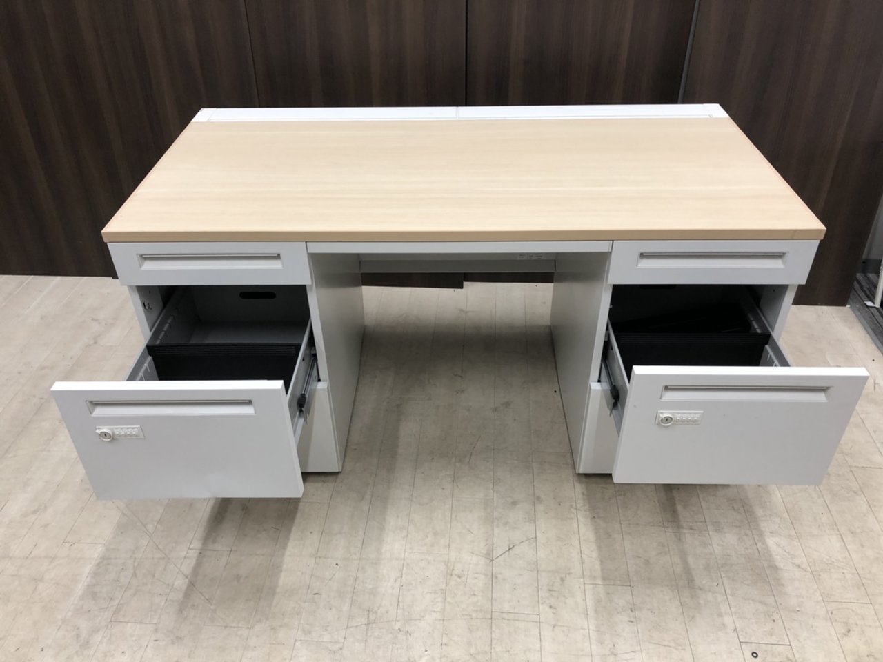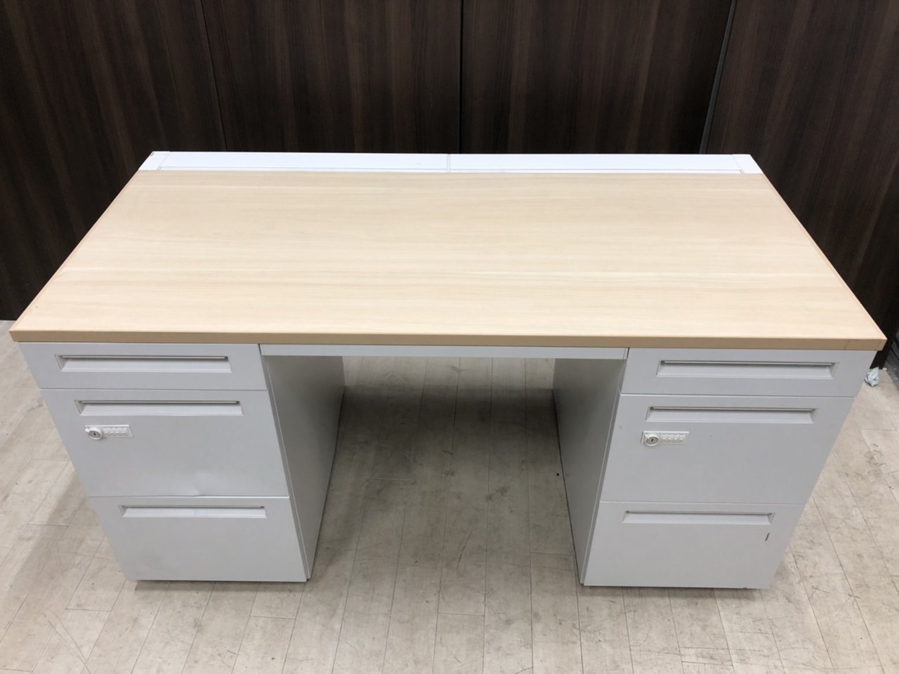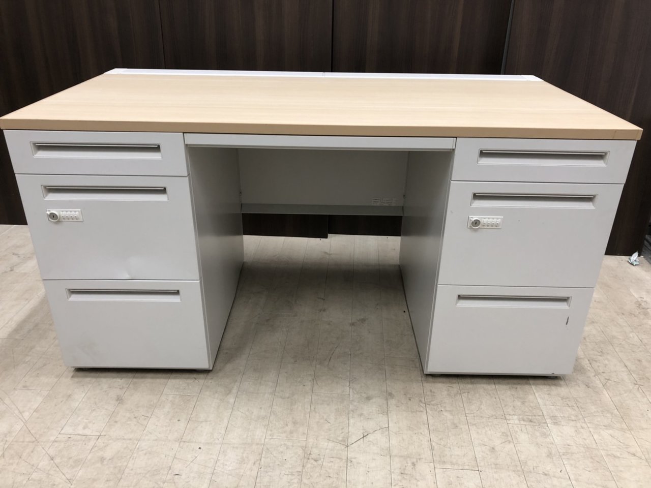 凹みがあるためお安くご提供!140cmの両袖机!オカムラ製アドバンス