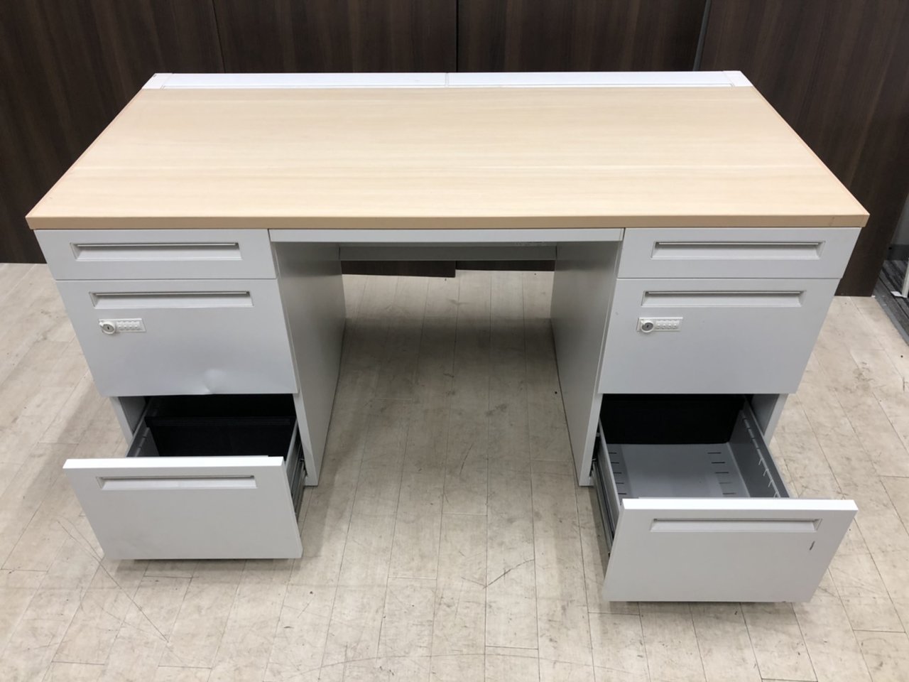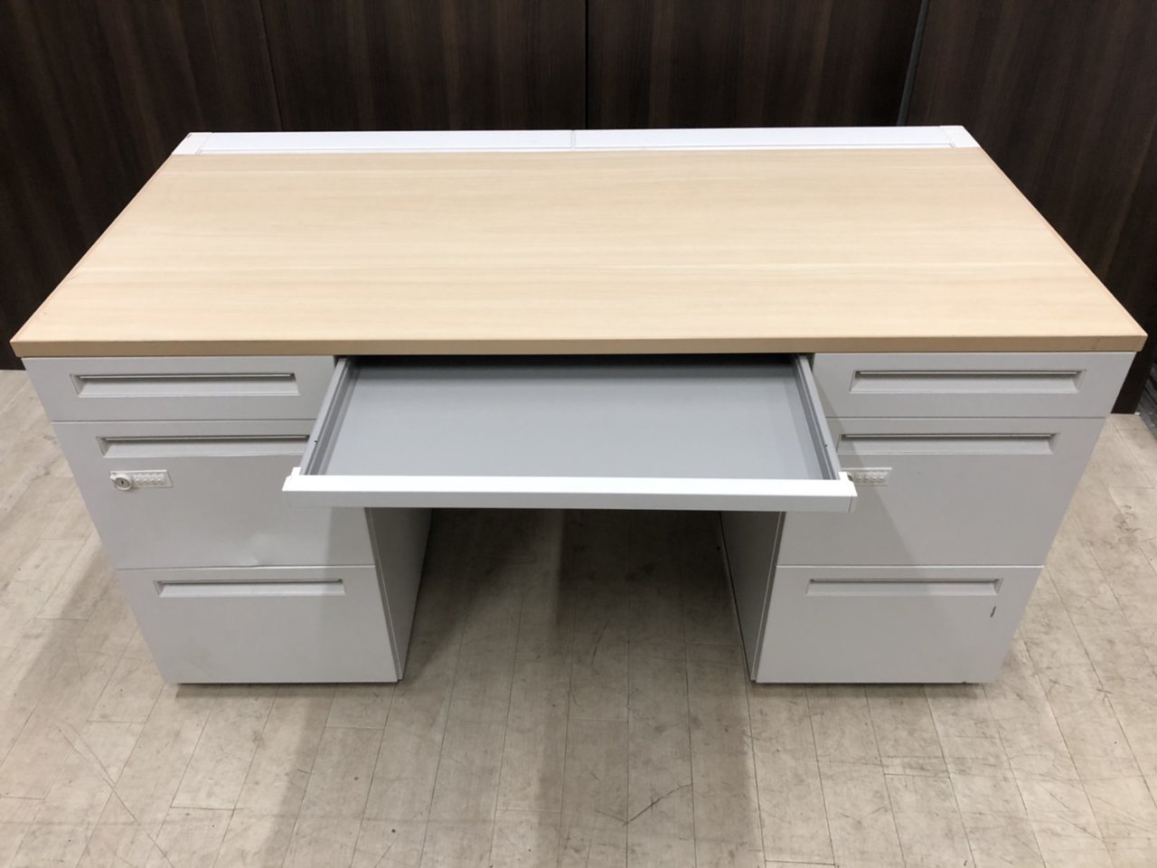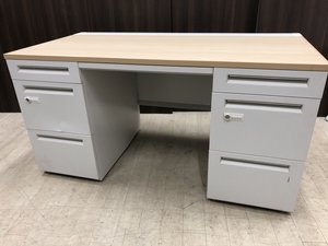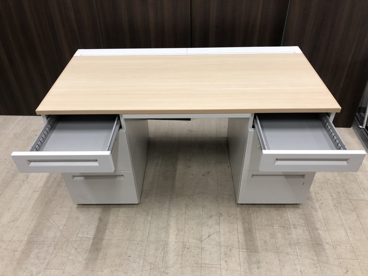 凹みがあるためお安くご提供!140cmの両袖机!オカムラ製アドバンス