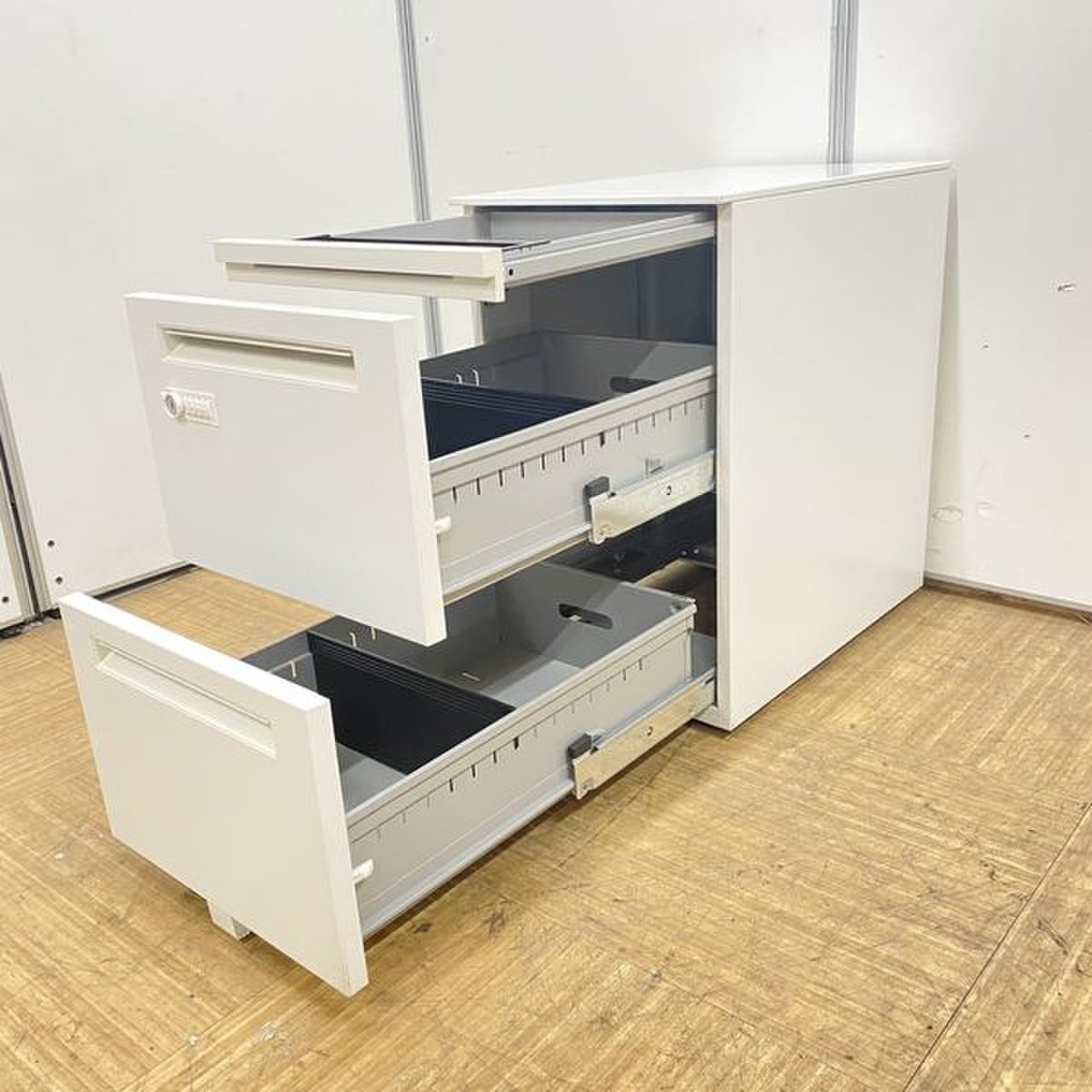 今人気のダイヤル式! 内田洋行製の3段ワゴンが14台のロット入荷! 収納 デスク下 ホワイト 袖机- 神戸・三宮店
