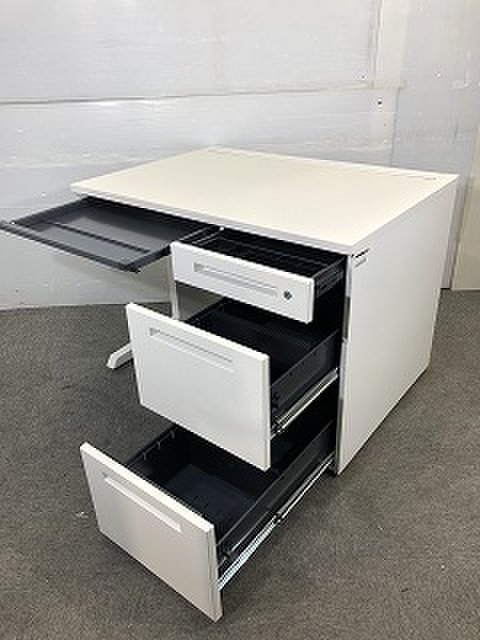 上段には文房具、中段には小物、下段はA4ファイルなどが収納可能です。