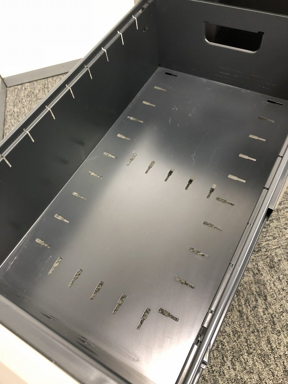 - 一部不具合ありその脇机・ワゴンの本来の効用を果たすための機能以外の一部が使用不可な状態。(例、引出が開閉しづらい、 キャスターロック機能使用不可、ラッチ不良 等がある。)