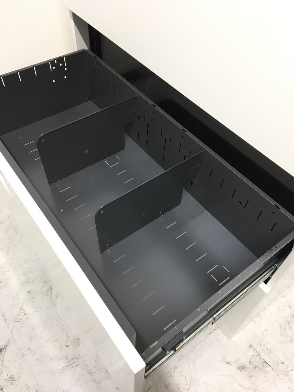 - 完備ベース、連結ビス、仕切り板が完備されている。